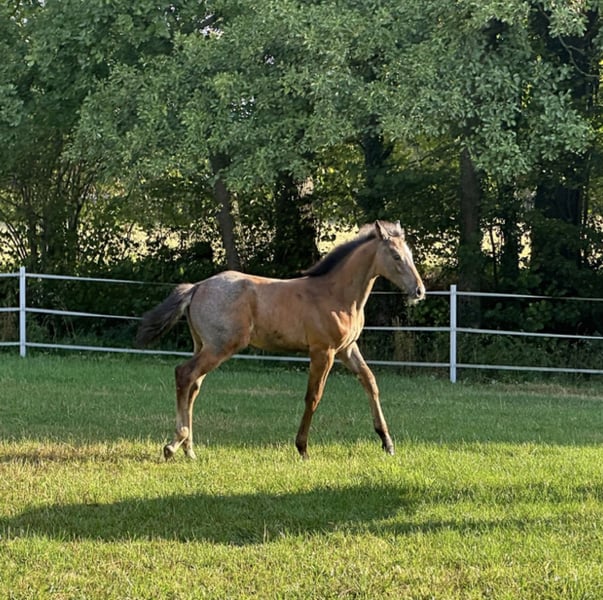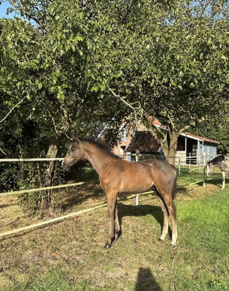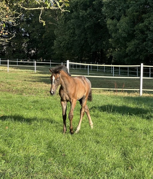 Prämiertes Hengstfohlen mit herausragenden Bewegungen, überaus korrektem Fundament und kraftvoller Hinterhandaktion, die Vorfreude auf die zukünftige Springkarriere macht. Dieser Hengstanwärter mit olympischem Pedigree präsentiert sich edel, langbeinig, modern und mit besonderer Typausprägung. Sein wacher, aufgeschlossener Charakter bereitet täglich Freude. Seit dem ersten Tag in der Hand beherrscht Comme en bert das Fohlen-ABC, kennt alltägliche Hofgeräusche und den Hufschmied. Geimpft und entwurmt ist er selbstverständlich auch. Dieses qualitätsvolle Hengstfohlen ist eine Offerte für Zucht und Sport und wird gerne in fördernde Hände gegeben. Bei ernsthaftem Interesse gerne per DM kontaktieren. Pedigree: Die Zangersheider Mutter Florien van den Bosrand Z lief 2-jährig über die Auktion in Belgien (Video s. https://youtu.be/4kqM1Q-jLlU?si=btH1qt1EEr0zzOhC) und brachte bereits ein überaus korrektes, typvolles Stutfohlen, das ebenfalls die Fohlenprämie erhielt und 2024 Sieger des Fohlenchampionats wurde. Die Mutter zeigte sich beim Anreiten überaus leistungsbereit, ehrgeizig und rittig. Da die folgende Fohlenpause so positiv geglückt ist, durfte sie noch ein weiteres Fohlen bringen. Ihr Halbbruder aus der selben Mutter ist kein geringerer als Giljandro van den Bosrand, der sowohl unter Henrik von Eckermann und René Tebbel als auch unter der Amazone Anna Kellnerová unzählige internationale Erfolge auf Fünf-Sterne-Niveau sammelte und bewiesen hat, dass er nicht nur ein hochzuverlässiger Partner für erfahrene Parcoursprofis, sondern auch für aufstrebende Amazonen in den schwersten Parcours der Welt ist. Muttervater Foncetti vd Heffinck hat ebenfalls zahlreiche Siege und Platzierungen auf internationalem Fünf-Sterne-Niveau errungen und krönte seine Karriere mit der Teilnahme an den Olympischen Spielen in Paris 2024. Seinen Nachkommen vererbt er die gewaltige Sprungtechnik, Rittigkeit und ansprechende Bewegungen. Nicht zu verleugnen ist, dass MMV Clinton, selbst Olympiateilnehmer und Nationenpreissieger, der bis heute als Phänomen im Spitzenspringsport und einer der echten Hauptbeschäler gilt, seine schöne Aufmachung, das intelligente Auge und das wohl proportionierte Exterieur bis in die Generation dieses Hengstfohlens weitergegeben hat. Mutter und Halbschwester des Hengstfohlens können besichtigt werden. Vater Comme Prévu ist Hauptprämiensieger und international erfolgreich in Klasse S. Schick, kopfklar und unkompliziert vererbt er vor allem Typ und Sportlichkeit und hat bereits mehrere gekörte Söhne. Sein Vater Comme il faut ist Sieger in Weltcupspringen. Dessen Vater, Cornet Obolensky, gewann große Preise und Nationenpreise und ist einer der erfolgreichsten Vererber der Gegenwart. Mutter von Comme il faut ist die Ikone Ratina Z, Erfolgspferd von Ludger Beerbaum und Mannschaftsolympiasieger, Mannschaftsweltmeister, Doppeleuropameister und Weltcupsieger. Dieses Hengstfohlen vereint leistungs- als auch zuchterprobtes Pedigree der Extraklasse.