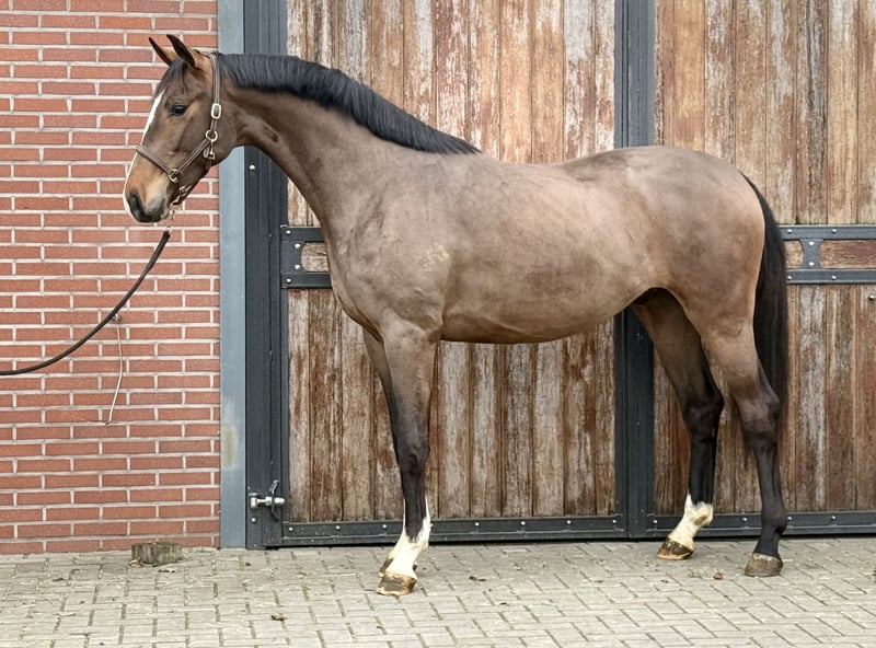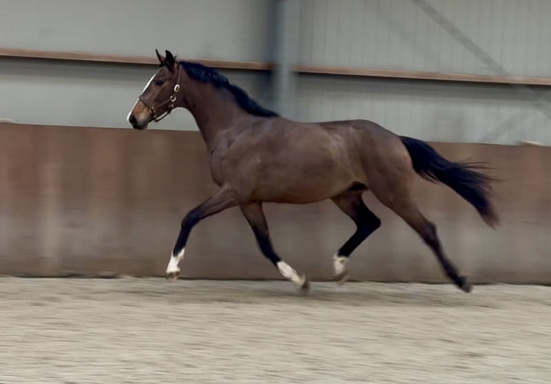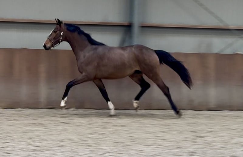 Bijzonder fraaie dressuurhengst uit eigen fokkerij met extra beweging. Deze jonge hengst beschikt over een aansprekend type met sterke verbindingen. Hij is correct en heeft een goed fundament. Hij beschikt over drie uitstekende basisgangen. Zijn stap is ruin en actief. In draf maakt hij een mooie zelfhouding. Hij heeft veel swung en al een goede balans. Ook heeft hij een goede buiging in het achterbeen dat hij goed onderbrengt en goed weet te dragen. Zijn galop is actief en mooi opwaards gesprongen. Hij komt uit een zeer goede moederlijn. Zijn moeder Dilena is in het bezit van het Elite predikaat en bracht in combinatie met Bordeaux al twee internationaal presterende Inter II dressuurpaarden. Afgelopen jaar werd haar veulen Vilena MP (v.Vino Tinto) één van de best verkochte veulens van de ELITE veulenveiling Borculo en vertrok naar de stallen vd Iron Spring Farm in Amerika. De grootmoederbracht o.a. de bekende Europees kampioen merrie ‘RILENA’ (v.Flemmingh). Bij interesse graag bellen of appen: +31(0)648271956 of +31643197337 Een video is op aanvraag te verkrijgen.