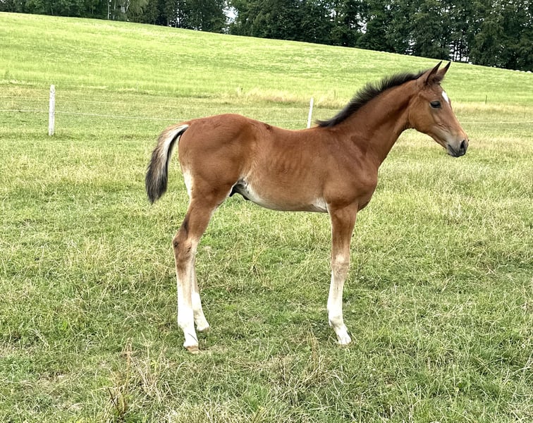 Directly from the breeder: Beautiful human-oriented colt from the end of April with an increasingly clear color kick. He would already be so conspicuous enough - with beautiful erection, a lot of neck and stable joints, he always shows himself with 4 white legs and pretty blaze with very loose movements, a lot of rubber and the engine in the right place - yet always smart, affectionate and clear-headed. Every day we can observe how the white of his legs gets higher and higher, stretches over his knees to his stomach as if his whole underside had been painted white.... Let's be surprised:) His dam by Landor S x Dublin was once qualified for the World Championships for Young Horses in Lanaken and then ran successfully in amateur sport up to medium level with a lot of attitude and caution. As a young horse, she owned a 1er TÜV at that time - a very nice mare who raises self-confident, clear foals. His sire Warrior is a highly successful stallion in Belgium by Tangelo vd Zuuthoeve x Heartbreaker. He was a participant among others. At the Olympic Games in London, WEG Caen 2014, World Cup Final Lyon 2014, etc We wish loving hands for this little superstar ! Video: https://youtu.be/nn1NRfi3kcU