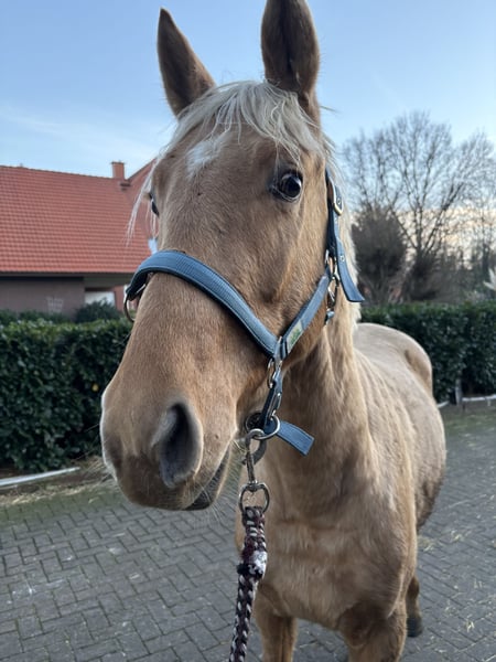 **Sales Advertisement: Dreamy Oldenburg Stallion for Sale** We offer an exceptional Oldenburg stallion for sale, born in 2023. This beautiful Palomino captivates not only with his striking appearance but also with his promising potential in dressage. **Features:** - **Breed:** Oldenburg - **Gender:** Stallion - **Year of Birth:** 2023 - **Color:** Palomino - **Height:** 170 cm - **Suitability:** Dressage The stallion is distinguished by his excellent movements and charming character. He is well-mannered, has already acquired basic knowledge, and shows great talent for dressage. This stallion is ideal for ambitious riders looking for a promising horse for the future. If you are interested or need further information, please feel free to contact me. From this lineage come auction horses as well as sport-successful Inter I and Grand Prix horses. Don’t miss this opportunity and schedule a viewing appointment! More horses available on-site, from foals to finished riding horses. Feel free to call 015144548149.