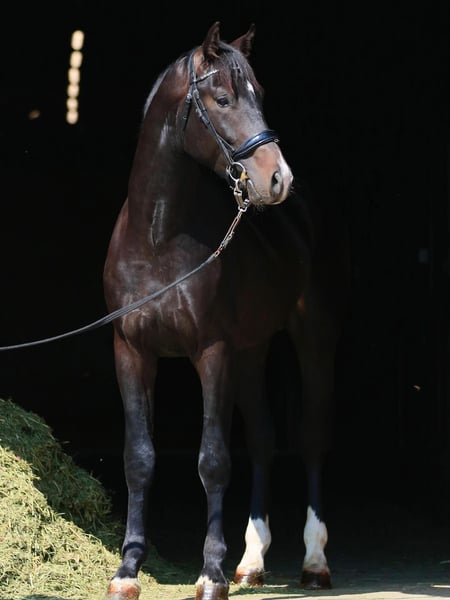 Jupiter SV 2023 • Étalon • Oldenburg • Prospect de dressage Fils puissant de l'« Empereur » Jovian, né à Status-Victoria DBS. Un poulain grand et impressionnant avec une forte conformation, des allures expressives et une énorme puissance dans les membres postérieurs. Une tête et un cou attrayants, une ligne de dos solide et des marques élégantes complètent son apparence. Pedigree de premier plan : Jovian × For Romance I — l'une des lignées de Grand Prix les plus réputées d'Europe. Jupiter SV promet un avenir brillant dans le sport ou l'élevage. Prix : 16 000 € Exportation possible.
