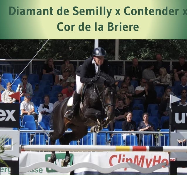 Wunderschöner schwarzer Springhengst mit großem Springpotenzial. Geboren im Jahr 2022. Seine aktuelle Stockmaß beträgt 1,68 m. Wie auf dem Foto zu sehen ist, ist er im Rücken etwas schwach bemuskelt und fällt im Bereich der Schulter etwas ab, weshalb er auch preislich etwas reduziert ist. Dies steht einer sportlichen Karriere jedoch nicht im Wege. Ansonsten ist er sehr korrekt, gesund und ein angenehmer Hengst in der Box und am Führstrick. Top Holsteiner Blutlinie: DIAMANT DE OPERETTA x QUINTERO. Der Vater ist ein Nachkomme von DIAMANT DE SEMILLY und hat auf internationaler Ebene Springen gezeigt. Die Mutter dieses Pferdes hat ebenfalls auf internationaler Ebene (1,45 m) gesprungen. Bei Interesse gerne anrufen oder per WhatsApp schreiben: 📱 +31(0)643197337 📱 +31(0)648271956