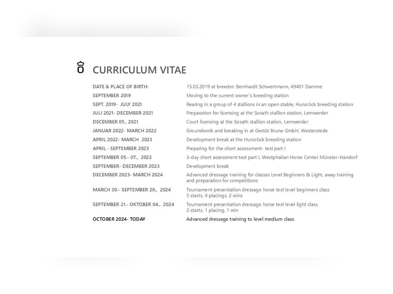qualsiasi Alex Marggraf Dressage Sales Alexandra Baumann-Neef Angelina De Vittorio Anja Rietbrock Anna Carina Jung Ann-Christin Wienkamp Antje Lang Antonio Macias Caballero Ausbildungsstall Blanken Ausbildungsstall Egbers Vechtehof Ausbildungsstall Patricia von Oesen Ausbildungsstall Sandra Kappernagel Ausbildungsstall Semler BADO SPORT HORSES Beatrix Jahrmatter Bernhard Schrapper BG201473855 Blumenhof Landwirtschafts GmbH BM Horse Brähler Sportpferde Bramall-Dusche GbR Burghof Brodhecker c/o Familie Bera Camille Martel Carolin Förster Carolin Heckenbegrer Carolin Heyer CAT Sportpferde Celi Rank Christiane Beck-Pfisterer Christie Dreessen Christina Breuer Christina Mertl Christina Winkler Christine Kortsch Cichoń Stallions Claudia Hemmen Claudia Lackert Clemens-August Berding Con Altmann Constanze Schweinsberg CT Horse Sales Agent CZ Breeding Stall CZ7758013791 Daniel Gregorio David Forstreuter Denis Uwelius Dennis Ripphoff Destiny GmbH DF Sportpferde Doris Graf Dressurausbildung Dressurausbildung Paradiso Dressurpferde Ludwig Kathmann KG Dressurpferde NG DE Dressurpferde- und Ponys Catharina Dreier Dressurpferdezucht Suhr Dressurstall Dressurstall Brünen Elisabeth Lukas-Salzgeber Ellen Beate Storrer Equindo Dressage Horses GmbH Erlenhofpferde Dressur- und Springpferde ESHA.horse Eva Meininger FM-Sportpferde Fohlenfreunde Sportpferde Friedbert Schaul Friederike Nienaber Friedrich Steisslinger Garmann Reit,- und Sportpferde Georgina Hilje Gernot Reinmüller Gestüt Hain Gestüt Hämelschenburg Gestüt Hohenschmark GmbH & Co KG Gestüt Meyenburg Gestüt Seefrieden Gestüt und Pension Lindenhof Graben Stefanie Gut Carlsdorf Gut Füchtel Landwirtschaft und Pferdehaltung Gut Schönweide Heike Neumann Heimrich GbR Heinz-Dieter Blumhoff Hendrik Sosath Hendrik Sosath Hendrikje Heinrich Hof Brüning Pensionspferdehaltung Hof Duveneck Hofmann Equestrian Horsebid,LLC Hubert Metzler Hubert Winkel Imke Böckmann Iris Kroehnert Jan Hoffmann Jan-H Wollesen Jenna Thümmler Jillian Wyrobnik Joline Durand Jonathan Grüber Julia Dunker Julia Janze Julia Richter Julia Schneider JustHorsies K L Karl Wilhelm Waschka Karoly Görcsi Katharina Zajic Kerry ORegan Kiki Wiltfang Kim Pfeiffer Kris De Doncker Pferdewirtschaftsmeister FN Larissa John Lars Schulze Sutthoff Lemaire Sporthorses SL Lene Sophie Osterloh Lennart und Jörn Voß GbR Leslie Rohrbacher Lexis Sporthorses Lisa de Graaf Maike Kessing Manfred Niedermeier Manuela Schriml Marco Makosch Maria Helene Kröger Marie Heidemann Marieke Rennegarbe Marie-Louise Breekweg Martin Kersten Matthias Schlamminger GmbH Melissa Janssen Dressage Michele Radzey MOUNT ST JOHN EQUESTRIAN LLP Nadine Elbrecht Natalie Rüther NorCordia Oldenburger Pferdezuchtverband e.V. Paul Schockemöhle Pferdehaltung GmbH Paulina Holzknecht Pavlisova perle ballante Pferd for Sale Pferdevermarktung Pferde aus guter Hand Pferdeglück GmbH Pferdestall Johannes Pferdezucht MKuhlmann Pferdezucht Online Pferdezuchtverband Brandenburg-Anhalt eV Pferdezuchtverband MV Philipp Hess Platinum Equine Auction PREcaro Quadriga Dressurpferde Rainer Lechl Ralf Bunte Regina Wallner Reinhard Hofmann Reinhold Distel Reitanlage Brunnenfeld GbR Reitanlage Schmöe Reiterhof Bert Deter Reiterhof Faller Reitsportanlage Friedo Berg Richard Seitle Rita Richter Rlz bvba Robert Conredel Rudolf Zettl S. Clemens Salesporthorses Sandra Graber Sarina Breuer SCEA Aux Sources dApolline Sebastian Rode Silke Blendermann Simon József SLF Horse Auctions Sophie Kaltenbacher Sport- & Freizeitpferde Sport Pro Horses Sport- und Freizeitpferde RM (UG) Sporthorses Stud GmbH Sporthorses svs sport-horses-sirrin Sportpferde Marco Weber Sportpferde Müller Stajnia Siekierscy Stajnia Wygoda Stal Brouwer Stal Buitenhuis Stall Hladik, SH Sportpferde GmbH Stall Schwierking Stefanie Tritscher Steffen Brunkhorst Swantje Schröter Sylvia Hamel-Stieghahn Tabatha Ohrfandl Taylor Dressage Tereza Bezroukova Thehorsebay Timo Kolbe Top Horses V L Sportpferde Hust Vasilina Savinova Verena Erdmann verkaufspferde-24de Michael Gaillinger Veronika Liiv Vicky Köhler Vorwerk Waldemar Koop Youhorse.auction Zucht und Ausbildungsstall Chantal Michaelis Zucht- und Ausbildungsstall Markus Rump Zuchtgemeinschaft Zuchthof Bauer