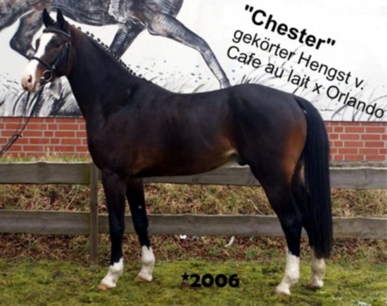 Bewährter Leistungs- und Rittigkeitsvererber m. top Nachzucht! Cafe au lait, Körsieger des Springpferdezuchtverbandes Oldenburg-International. Sieger im 30-Tage-Tests von Neustadt/Dosse., sowie Bundeschampionatsfinalist und dort nur ganz knapp geschlagen. Vollbruder zu Cody (Bundeschampion der sechsjährigen Springpferde 2002, ebenfalls aus der Pferdezucht Kuhlmann) Er hat sich in den letzten Jahren einen Namen als Doppelvererber mit Spitzennachzucht gemacht und kann mehrere gekörte Nachkommen und unzählige im Dressur- und Springsport bis S*** erfolgreiche Nachkommen vorweisen. Sie alle überzeugen durch unheimlich viel Rittigkeit und Bewegungsqualität, optimale Arbeitseinstellung und viel Springvermögen. So wurde Cafe's Casimir" (Cafe au lait x Calido x Grannus) gefeierte Preisspitze der Oldenburger Eliteauktion, ist bereits in jungen Jahren Seriensieger in S- Dressuren und international Intermediaire I siegreich. Stute Kasselmanns Cafe's Caletta (Cafe au lait x Calato) ist ebenfalls bereits S-Dressur platziert und international Grand Prix siegreich. Cafe's Matts (Cafe au lait x Don Frederico) wurde zweitteuerstes Dressurpferd der Oldenburger Summer Mixed Sales. Weitere Jungpferde aus springbetonten Mutterstuten sind bereits mehrfach in Dressurpferdeprüfungen A bis M platziert und sind bemerkenswert bewegungsstark und kopfklar. Dass die Cafe au lait Nachkommen im Springsport bis zur schweren Klasse überzeugen steht außer Frage, so zum Beispiel aus unserer Zucht: Cafe's Champus: gekört, Vizeweltmeister der jungen Pferde Cafe Junior: gekört, international erfolgreich in Saudi Arabien Cafe's Columbo: gekört und sporterfolgreich in Frankreich Cafe's Don Rubin: gekört, 4jährig als jüngstes Pferd Bronze beim Dobrocker Deisterchampionat, 5jährig mehrfach siegreich Springpferde L, M platziert und zum BuCha qualifiziert Stationiert bei Paul Schockemöhle zeugte Cafe au lait schon etliche international erfolgreiche Springpferde, u.a. "Royce", siegreich im FEI CSI5* $500,000 Rolex Grand Prix Wellington. Cafe au lait selbst war unter Philipp Weishaupt Bundeschampionatsfinalist und ist bis S*** Springen erfolgreich gewesen, ist aber auch mit drei spektakulären GGA ausgestattet und dressurmäßig auf S Niveau ausgebildet worden. Reinerbig dunkel, vererbt größtenteils bunt. Trächtigkeitsrate in den letzen Jahren stets 100%!! WFFS negativ. Videoanfragen etc. vorab via WhatsApp.