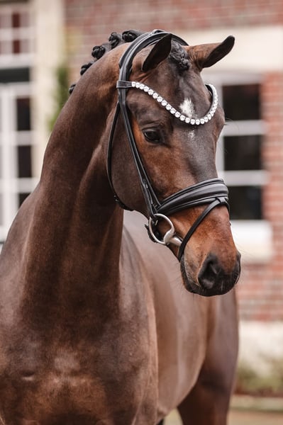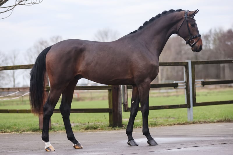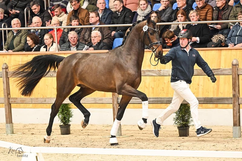 Fine Future – licensed at the Oldenburg Stallion Days 2025 Fine Future combines the outstanding genetics of the main premium winner Federer with the proven quality of the dam line from Stedinger, making him ideally suited for a successful career as a future dressage sire. With top-notch movement quality and his balanced, uncomplicated character, he impressed across the board and rightfully received a positive licensing verdict at the Oldenburg Stallion Days 2025. Pedigree Sire Federer captivates with first-class movement quality and fantastic temperament. His first foal crops have consistently presented themselves as typy and elegant. The offspring demonstrate a lot of energy and powerful push-off in their movement, which has excited breeders and led to numerous repeat pairings. He was crowned main premium winner stallion at the Oldenburg Stallion Days 2023. The dam's sire Ampère was the champion stallion of the Dutch licensing (KWPN) in s'Hertogenbosch. He is now the father of more than 60 licensed sons, champion stallions, champion mares, and highly valued auction top foals. The second dam St.Pr.St. Bold Lady produced the two licensed stallions Adoro by Ampère (full brother to dam Bonita) and Quaterbold du Payrol by Quaterback. The latter became the French champion of 6-year-old dressage horses in 2015 with Alizée Roussel and participated in the World Championships for young dressage horses. He has since placed with his amateur rider in Prix St. Georges. Adoro is successful in Intermediaire I with his rider Karin Persson (USA). The third sire Donnerschwee has produced several licensed sons and successful sport horses up to Grand Prix, such as Lux-Dressage Dona Figuera OLD. The great-grandmother, elite mare Bold-Fantasy, produced the former Oldenburg champion stallion and significant dressage sire Stedinger, who was successful in dressage up to Intermediaire I in Australia, and the licensed Donninger by Donnerschwee, making him the full brother to the second dam, St.Pr.St. Bold Lady. Bold-Fantasy completed her mare performance test with an overall score of 8.67, achieving a jumping score of 10.0 and a rideability score of 9.0. She is the sister to the dressage stallion Lamar H and half-sister to the eventing horse Just Me H by Larimar, who was victorious up to CIC** and the 2004 German Champion with Anna Christina Rössler. The dam line of Besinda is among the most successful and contemporary lines in Oldenburg breeding. The family also includes the Intermediaire I successful Tailormade Mr. Pink by De Niro, the licensing winner Waldsee (Intermediaire I) by Waldschütz, as well as the Prix St. Georges successful Basic Instinct by De Niro and Satchmo by Santiago. Other successful horses from the line include the Grand Prix successful Andrew, Armagnac, and Inschallah B, as well as Tansanit (Christine Stückelberger/CH), a dressage team silver medalist at the 1984 Olympic Games, and the show jumping successful Quincy by Quattro B under Erwin Mohn, Dominik by Duellschütz under Michael Strässer, Lucky Strike by Lucky Ghost under Eva-Maria Lücker, and Zap Forever by Zapateado under Andreas Buchner. Another licensed stallion from the line is Casino Grande by Casino Berlin.