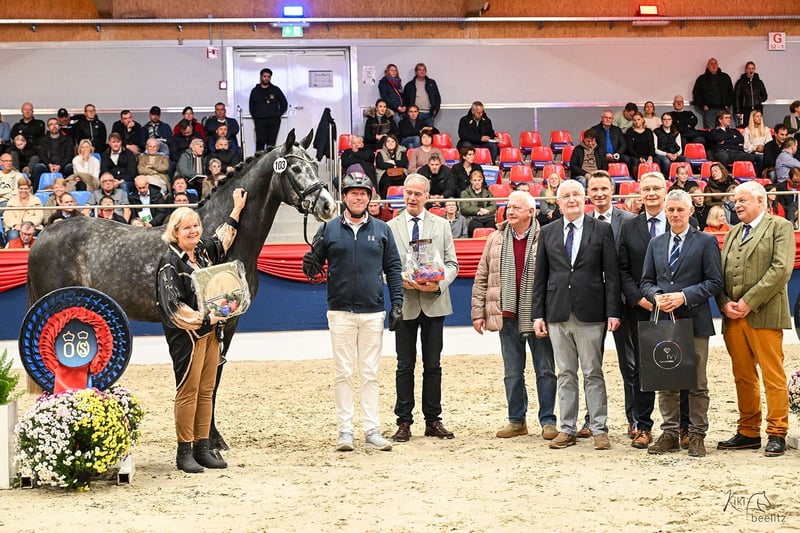 Bondolo wurde 2023 gekört und überzeugt auf Anhieb mit seiner Typstärke, der charmanten Art und dem wunderschönen Gesicht. Seine elegante Erscheinung und Farbbrillanz machen ihn bei unseren Züchtern besonders beliebt. In Bewegung stechen seine erstklassigen Grundgangarten heraus, wobei insbesondere sein sehr guter Schritt hervorzuheben ist, der mit enormer Taktklarheit, Geschmeidigkeit und deutlichem Übertritt ausgezeichnet ist. Auf seinem ersten Turnier siegte Bondolo überlegen mit einer 8,5 in der Reitpferdeprüfung unter Madita Rentz und bekam für sein Gebäude die Wertnote 9,0. 2025, nun vierjährig, konnte Bondolo weiter überzeugen. Er siegte mehrfach in Reit- und Dressurpferdeprüfungen der Klasse A. Beim Oldenburger Landesturnier in Rastede wurde er 3. im Dressurpferdechampionat. Aufgrund dieser Leistungen und seines tollen ersten Fohlenjahrgangs wurde Bondolo mit der 1c-Hauptprämie des Oldenburger Pferdezuchtverbandes ausgezeichnet! Abstammung Bondolo stammt ab von Erfolgsvererber Bonds, der bereits zahlreiche gekörte Söhne und Preisspitzen aus Auktionen vorweisen kann und 2021 die FN Zuchtwertschätzung im Bereich Jungpferdeprüfungen anführte. Bonds selbst war Seriensieger in Dressurpferdeprüfungen und erfolgreich bis in die schwere Klasse. Seine Nachkommen werden besonders für ihre hohen Rittigkeitswerte, die exzellente Bewegungsqualität und Typstärke geschätzt. Bonds Pedigree wird durch die modernen Dressurpferdemacher Benicio, Sir Donnerhall und Rubinstein I abgerundet. Bondolos Muttervater Totilas war wohl der bekannteste Dressurhengst und bewegte die Menschen weit über den Dressursport hinaus. Er stellte drei Weltrekorde auf und war dreifacher Weltmeister und zweifacher Europameister, sowie zweifacher Niederländischer Meister und zweifacher Deutscher Meister. 2010 gewann Totilas das Weltcup-Finale in ’s-Hertogenbosch, Niederlande. Die dritte Mutter Pia brachte das S-Dressurpferd Walk of Life von Wolkentanz II. Nachkommen Aufgrund seiner Eigenleistung und seines tollen ersten Fohlenjahrgangs wurde Bondolo mit der 1c-Hauptprämie des Oldenburger Pferdezuchtverbandes ausgezeichnet! Bondolos erste Nachzucht ist ausgestattet mit wunderschönen Gesichtern und modernem Typ, gepaart mit besonderer Bewegungsqualität. Junghengst Bondolo präsentierte auf der Fohlenschau seinen ersten Fohlenjahrgang. Die Kommission zeigte sich positiv beeindruckt von den typvollen Fohlen mit schönen Gesichtern mit viel Ausdruck. Zudem hatten die vorgestellten Fohlen eine auffallend gute Sattellage mit einer schwungvollen, schulterfreien Bewegung. Der raumgreifende, sehr gute Schritt beeindruckte besonders. Auch Gerd Sosath war begeistert: "Wir haben bewegungsstarke, tolle Typen gesehen - ein herausragender erster Fohlenjahrgang des Junghengstes Bondolo!" weitere Informationen unter bondolo.sosath.com