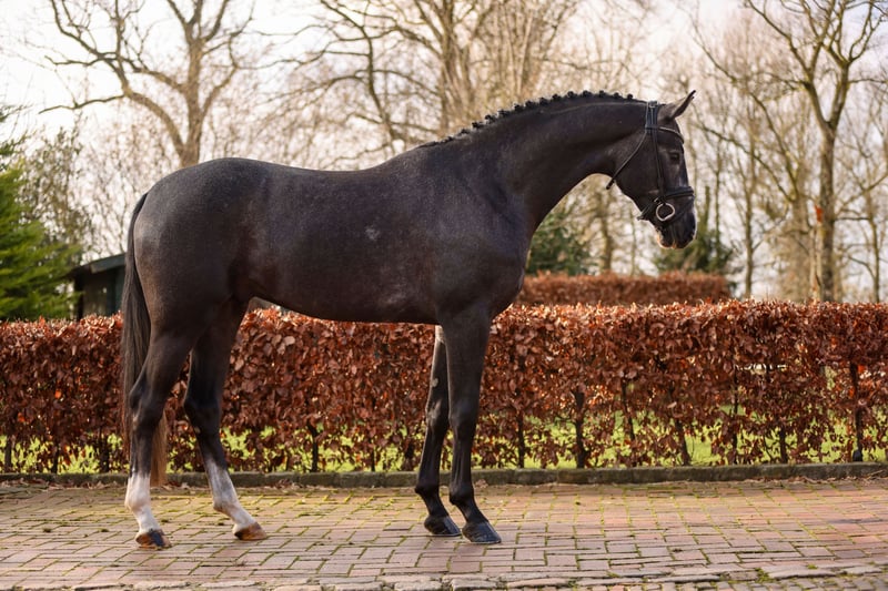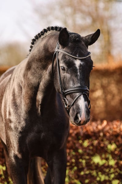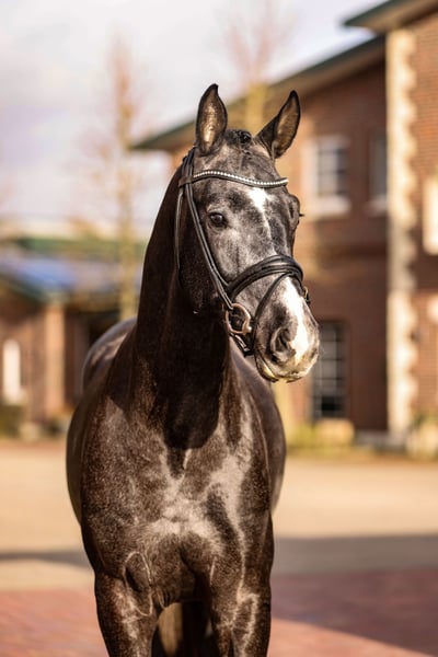 Bondolo was licensed in Redefin in 2023 and immediately impresses with his strong type, charming nature and beautiful face. His first-class basic gaits stand out in movement, whereby his very good walk is particularly noteworthy, which is characterized by enormous rhythmic clarity, suppleness and a clear overstride. Bondolo is by the successful sire Bonds, who already has numerous licensed sons and top prizes from auctions and led the FN breeding value assessment in young horse tests in 2021. Bonds himself was a serial winner in tests for young dressage horses and successful up to advanced level. His offspring are particularly appreciated for their high rideability values, excellent movement quality and strong type. Bondolo's pedigree is rounded off by the modern dressage horse makers Benicio, Sir Donnerhall and Rubinstein I. Bondolo's dam's sire Totilas was probably the most famous dressage stallion and moved people far beyond the sport of dressage. He set three world records and was three-time World Champion and two-time European Champion, as well as two-time Dutch Champion and two-time German Champion. In 2010 Totilas won the World Cup Final in 's-Hertogenbosch, Netherlands. His third dam Pia produced the advanced (S) level dressage horse Walk of Life by Wolkentanz II.