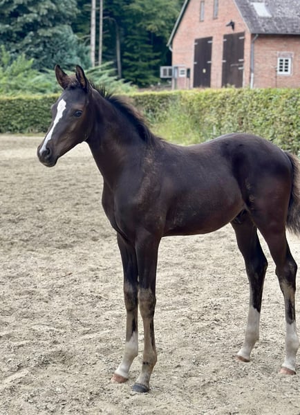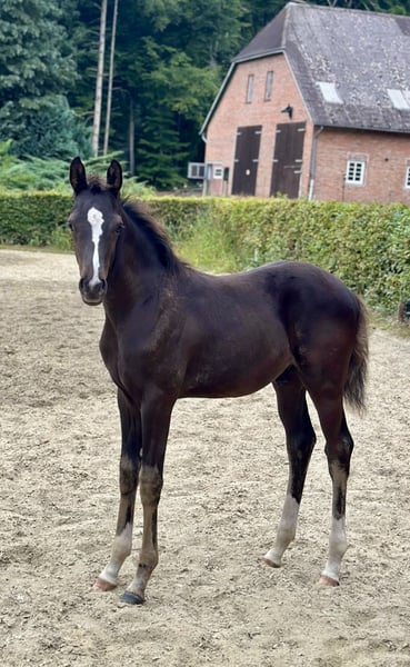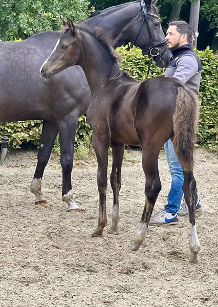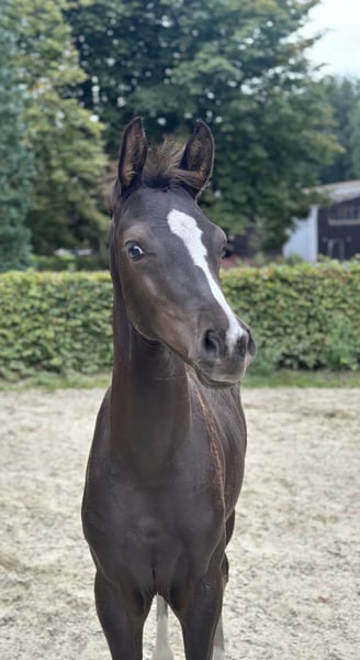 For sale is this beautiful colt, born at the end of May, sired by Bon Bolero x Repertoire. He is a black horse with a lot of neck and stands stallion-like. Wherever he is, he attracts attention with his striking appearance. This colt is equipped with three good gaits, always showing rhythm and impulsion, as well as a very active hindquarters. In terms of character, "Best Edition" is very people-oriented, brave, and well-behaved. He knows the basics of being a foal. He is halter-trained and has already behaved excellently with the farrier. I have successfully competed with his mother up to M** level in dressage (S level). The mare also had talent for jumping. Character-wise, the dam was a very dedicated, ambitious athlete who always had her heart in the right place and was a great partner in sports due to her outstanding willingness to perform. Location: 27801 Dötlingen The foal can be viewed with SERIOUS interest. !!! Please ONLY inquiries via PHONE OR WHATSAPP !!! 017657649224