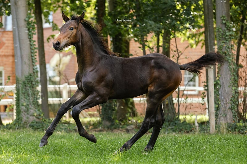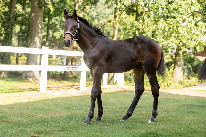 Die Mutter dieses großrahmigen Hengstfohlens war selbst in Springen der Klasse S erfolgreich, bevor sie in die Zucht ging. Die Großmutter entstammt dem bedeutenden Holsteiner Stamm776 aus dem viele international erfolgreiche Springpferde hervorgehen. Sie selbst brachte bis GP-erfolgreiche Springpferde und gekörte Söhne. Der Vater des Fohlens Diablue PS steht auf der Deckstation Paul Schockemöhle und war Sieger seiner Hengstleistungsprüfung mit der Note 9,29; für sein Vermögen und die Leistungsbereitschaft erhielt er die 10,0. Er hat bereits erste Hengstsöhne und hochpreisige Auktionsfohlen hervorgebracht.