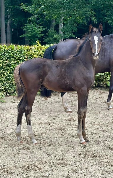 Hengstfohlen von Bon Bolero – außergewöhnlicher Typ und Talent Dieses Hengstfohlen vom beeindruckenden Vater Bon Bolero besticht durch seinen starken Typ und seine elegante Ausstrahlung. Aus einer Mutter, die bis zur S-Klasse im Dressur erfolgreich war, vereint er bewährte Leistungsgenetik mit moderner Eleganz. Er zeigt drei hervorragende Grundgangarten, stets bergauf, elastisch und im Gleichgewicht. Mit seinem mutigen und freundlichen Charakter ist er sehr angenehm im Umgang. Seine schönen Abzeichen machen ihn zu einem echten Hingucker in jeder Umgebung. Ein äußerst vielversprechendes junges Hengstfohlen für Dressur und Springen.