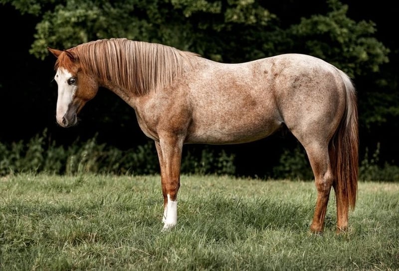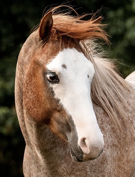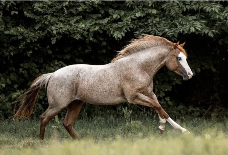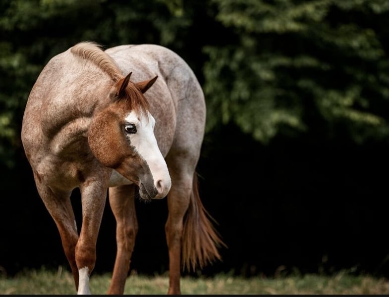 5-year-old Paint Horse gelding Skip Fox Roan is looking for a loving home as a pure leisure horse. Due to a lack of time, he has only been ridden sporadically in a group in the outdoors over the past year. Fairly speaking, I would describe his training level as "started." He has a very sensitive character and is low-ranking in the group. Urmel comes with American papers, and his teeth, vaccinations, and farrier care, as well as osteopathy, have been regularly attended to. All equipment is available for an additional cost upon request. During training, Urmel developed a gastric ulcer, which has completely disappeared and healed through controlled gastro treatment. This has led us to decide not to pursue a sport career for him, as we do not believe he can withstand the pressure. Therefore, he is being offered as a leisure horse at a foal price to a not overly demanding home. Only in open group housing with 24/7 hay. Mother is a US import from the Hancock line. For more information, please feel free to contact. Height 150 cm.
