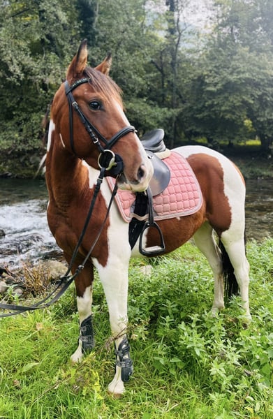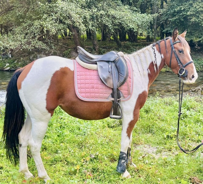 💖NIKA💖 Splendida puledra paint di 3 anni, carattere eccezionale è di una bontà unica. SANA, è una degli ultimi figli di Gamblin Gale. Ha documenti italiani ed è in regola con coggin test. Altezza sull’1.43 con margine di crescita. Lavora già bene alla corda e la stiamo addestrando a sella ..non ha problemi a salire sul VAN. CERCHIAMO UNA PERSONA CHE LA AMI ALLA FOLLIA. NO COMMERCIANTI. Per informazioni +39 3917059140