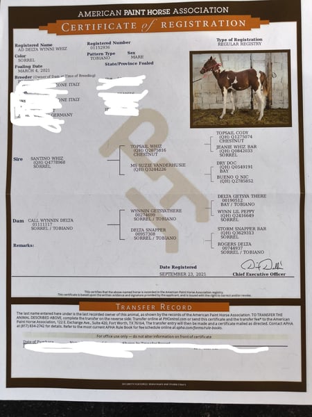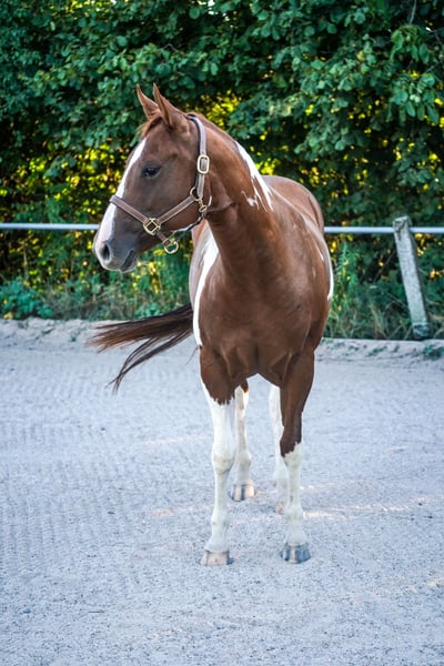 DELTA WYNNI WHIZ is een 4-jarige Paint Horse merrie. Ze heeft na het inrijden nog 6 maanden in professionele training gestaan, had daarna 4 maanden pauze en staat nu weer in professionele training te koop. Ze is super lief en braaf in de omgang, hoefsmid- en vrachtwagenmak, kuddecompatibel en kent zowel box-, als openstal- en weidehuisvesting. Ze is super fijn om te rijden, maar is geen beginnerspaard, omdat ze zeker ook karaktersterk kan zijn en werk nodig heeft. Ze zou zeker een geweldig recreatiepaard zijn en ook goed geschikt voor een wedstrijd - of het nu Reining, Ranch Riding of Trail is... Ook met vee kan ik me haar goed voorstellen. Ze zou zeker een geweldige allrounder zijn en het is ook ontzettend leuk om haar te rijden. We zijn net begonnen met de Ranch Riding manoeuvres. Aan het achterbeen heeft ze door een transportblessure een oppervlakkig litteken, dat haar echter op geen enkele manier stoort. Ze wordt verkocht met APHA-papieren en een Equidenpas. Plaats voor prijs, prijs stijgt met verdere opleiding. Vragen graag via WhatsApp naar 01772199292 of per privébericht.