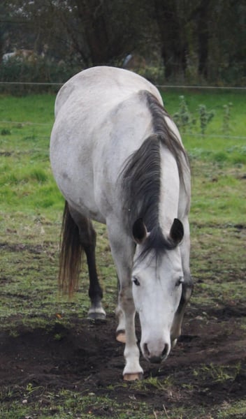 NW Beautiful Jazzgun - wunderschöne, graue Paint Horse Stute mit kräftigem Fundament und korrektem, geradem Beinen. Sie überzeugt durch ihre tolle Farbe und einen ausdrucksstarken, harmonischen Körperbau - ein echter Hingucker! Die Stute stammt aus bewährter, guter Reining/Cutting-Abstammung und ist NRHA einbezahlt. Sie wurde bislang aufgrund von Zeitmangel noch nicht angeritten und ist somit unverbraucht. Aufgrund eines Chips vorne rechts, der als Zufallsbefund bei einer AKU rauskam, wird sie als reitbare Zuchtstute abgegeben - sie zeigt keinerlei Lahmheiten oder Einschränkungen. Jazz ist 2019 geboren und hat ein Stockmaß von 150 cm. Sie besitzt einen ganz lieben Charakter, ist menschenbezogen, verschmust und immer händelbar. Ganz brav im Umgang. Jazz steht im Offenstall und ist herdentauglich. Sie ist 5-Panel n/n. Kennt Bodenarbeit und longieren. Jazz hat eine gute, alte Reining/Cutting Abstammung. Ihr Vater, JBars Cromed Gun ist ein Sohn vom Superior Open-Honor Roll Champion Gunners Crome Gun. Ihre Mutter ist eine proven Zuchtstute von Mister Dual Spring - IRCHA Open Cowhorse Futurity Champion, mutiple Open Bronze Trophy Champion or Reserve Bronze Trophy Champion, Producer of mutiple NRHA of Germany Open Breeders Futurity Finalists and NRHA of France Open Derby Champion.