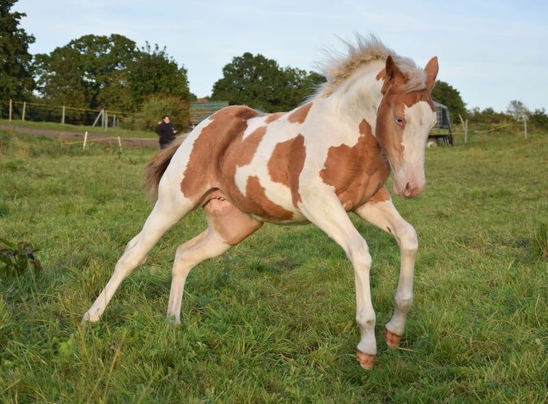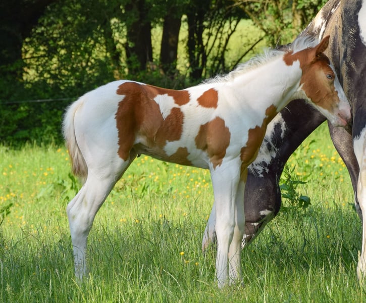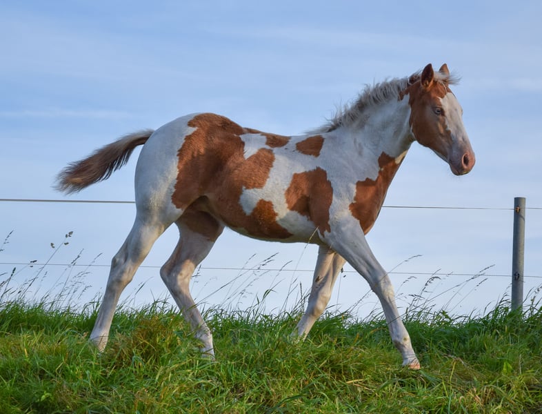 Hallo, sehr freundliches Paint Horse Stutfohlen " Docs Gold Rose - aka Rose" mit korrektem Gebäude, solidem Fundament und wundervollem, aufgeschlossenen Charakter. Sie wird später eine tolle Partnerin für Freizeit und Sport. Sie ist jetzt schon dem Menschen sehr zugewandt und freundlich. Daten zu Rose: Rasse: American Paint Horse Geschlecht: Stute Geburtsdatum: 05.06.2025 Farbe: Gold Champagne Tobiano 7 Panel N/N Geschätztes Endmaß: ca. 150-152 cm Abstammung: Vater: Indian Bigstep, erfolgreich geshowt in Reining, Stockmaß 1,54 m Mutter: Charmed Witch josie, Stockmaß 1,47 m Rose ist APHA registriert und das CoR liegt bereits vor. Der Equidenpass ist beantragt. Die Bilder sind von Ende September und von den ersten 3 Tagen. Die letzten beiden Bilder zeigen ihre Vollschwester (sold) im Alter von einem Jahr. Sehr cool und neugierig, aktuell mit einem Stockmaß von 1,41 m. Kann auch vor Ort besichtigt werden. Sie ist gesund und wächst artgerecht auf. Ist regelmäßig entwurmt und dem Hufschmied vorgestellt und wird geimpft. Beim Auszug kennt sie altersgerecht das Fohlen ABC. Transport könnte organisiert oder übernommen werden. Sie kann auch zur weiteren Aufzucht bleiben. Bei ernst gemeintem Interesse und Fragen gerne melden unter 01732090733. ☺️ Beste Grüße ☺️
