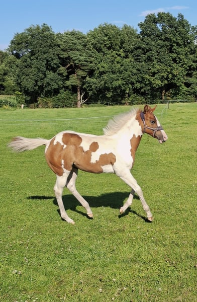 Paint Horse Absetzer Stute HAPPY BUMBLEBEE Red Dun Tobiano Geb. April 2025. Paneel 6n/n Das kleine red Dun Mädchen ist sehr Menschen bezogen und beherrscht schon das Fohlen ABC, den Schmied und das Anhänger fahren. Sie wird ca 150 bis 153 groß, ihre Mutter ist Continental Bumblebee und ihr Vater Jeannes Happy Ligth. Sie steht auf großen Weiden mit anderen Fohlen und mehreren Stuten. Sie verfügt über ein kräftiges Fundament und gute Veranlagung für den Reining oder Allround Sport. Hat einen Pass von PHCG und ein Papier von der APHA. Sie ist bereits abgesetzt und könnte in ihr neues Zuhause umziehen In fördernde Hände abzugeben Platz vor Preis Anzeige im Auftrag erstellt