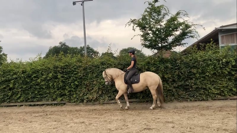 With a heavy heart, we are selling our wonderful leisure partner due to herd reduction. He is always friendly, very people-oriented, and gets along well with other horses. He is a rather sturdy type (German Riding Pony x Haflinger, full papers), and he can perform extended trot and lateral movements; he also jumps, although we haven't further trained him in this discipline. Currently, he is being ridden extensively in the field by a 16-year-old girl. He is familiar with dogs, tractors, etc. We would prefer him to be kept in an open stable and to be ridden by a youth or adult rider. He is sold with saddle and bridle. His teeth have been recently checked, and he has no health issues.