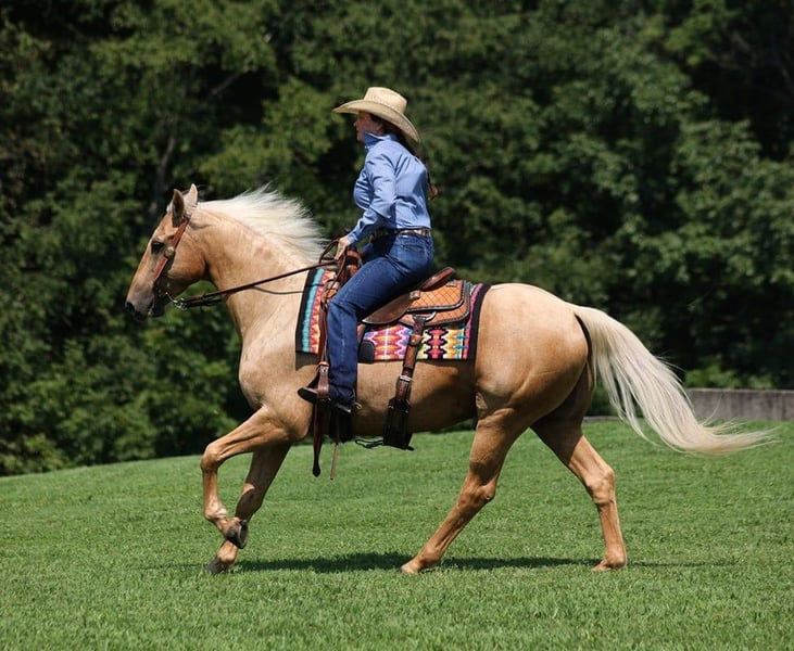 ONLINE AUCTION Place your bids at www.PlatinumEquineAuction.com Starting Bid $3500 Auction ends January 19th, 2025 Need a new saddle? Check out White Rock Saddles on our website or Facebook! A Zans Olen Jack is a stout built Golden Palomino Gelding. He is standing 15.1hh and he is a 2017 Model Registered AQHA Gelding. He is well bred going back to Zan Parr Bar and is a rare find with Two Eyed Jack still listed on his pedigree. Zan is a do it all kind of horse! He can go out and hit the trails and just cruise along slow and easy. He rides with his head low and will keep a loose/draped rein. He has been exposed to all kinds of wildlife. He will go up or down steep slopes, across deep creeks, over downed trees, and over all types of rough terrain while still being sure footed. He has been ridden through town and is safe in traffic is not spooky. He has been started on the roping dummy and is doing a good job tracking it. He knows his way around the ranch and has plenty of cow sense. We have taken him on several cow catching jobs and roped cows and big bulls on him. He will work the rope while you tie one down and knows how to help you get the job done. He has a smooth jog, a VERY VERY nice easy to set lope, a good stop, turns a circle both ways and backs with ease! Zan is an excellent horse for anything from trail to ranch work and is pleasure to be around! We are located in Brodhead, KY. Feel free to call Lucky 13 Equine Matt 765-698-4655 or Lysandra 765-717-2041 with any questions or to make a buy it now offer. Thanks!ONLINE AUCTION Place your bids at www.PlatinumEquineAuction.com Starting Bid $3500 Auction ends January 19th, 2025 Need a new saddle? Check out White Rock Saddles on our website or Facebook!