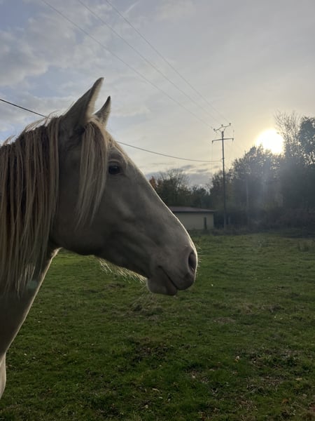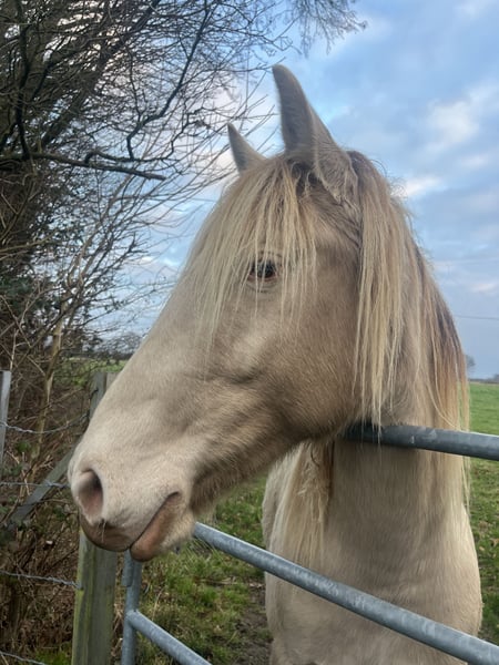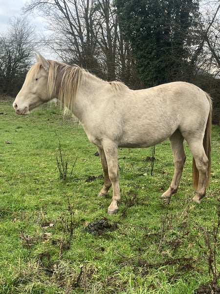 Astéria est une jeune jument qui aura 3 ans en juillet. Race: Palomino Belge Couleur: Champagne Homozygote (test ADN) Taille: pour le moment 1m47, taille adulte probable entre 1m50 et 1m55. C’est une jument douce, calme affectueuse Elle aime le contact humain. Elle est volontaire et aime bien faire. Elle marche bien en main, sait rester attacher. Début d’éducation a pied. Elle vit au pré avec d’autres chevaux. Visible en normandie dans le 27 Pas de confiage Suite à un changement de vie imprévu et le départ sur un autre continent, je lui cherche une nouvelle famille.