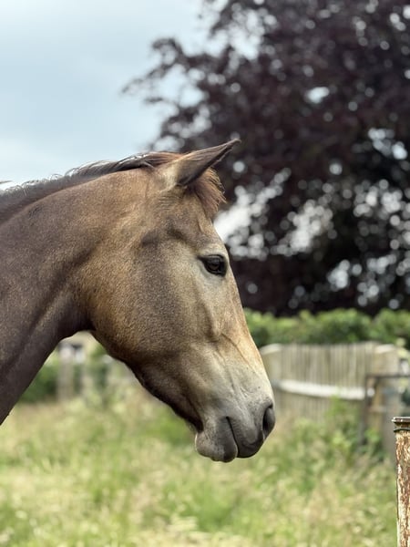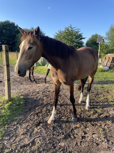 Ich habe mich schweren Herzens dazu entschieden meine Stute zu verkaufen, die ich seit Fohlen habe. Aufgrund von Schwangerschaft fehlte mir einfach die Zeit mich mit ihr so zu beschäftigen wie sie es braucht und durch die Reitpause von knapp 2,5 Jahren kann ich ihr nicht die Sicherheit vermitteln die sie benötigt. Sie war nie krank bei mir, ist regelmäßig entwurmt und dem Schmied vorgestellt (Barhuf/5-6 Wochen).Eine AKU liegt noch nicht vor. Gemessen wurde sie im April mit 1,59 cm. Unter dem Reiter ist sie stets arbeitswillig und hat viel Go, daher nicht für Anfänger geeignet. Sie ist schon Anhänger gefahren, spazieren gegangen alleine und als Handpferd, kennt Offenstall so wie Boxenhaltung. Im Sommer und Winter wechselt die Farbe, was sie optisch zu einem echten Hingucker macht. Zähne sind frisch gemacht und Physio war ebenfalls da. Probereiten bedingt möglich da es mir aktuell einfach an Zeit mangelt. Ich wünsche mir jemanden mit der nötigen Ruhe und dem Feingefühl für die kleine Maus.