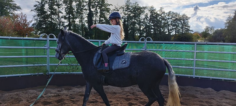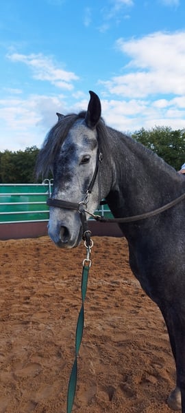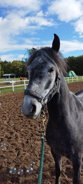 Jupiter was backed in mid-2025 and is accustomed to riding alone or in a group in the terrain. He is also familiar with groundwork and can be ridden as a lead pony. He is easy to handle even by children. He can be ridden completely bitless but is also familiar with a bit. He is sweet, playful, and loves to be groomed or simply to relax and play with his buddies in the paddocks or pastures. Most of the time, he is still sleeping when you come to the stable. 😉