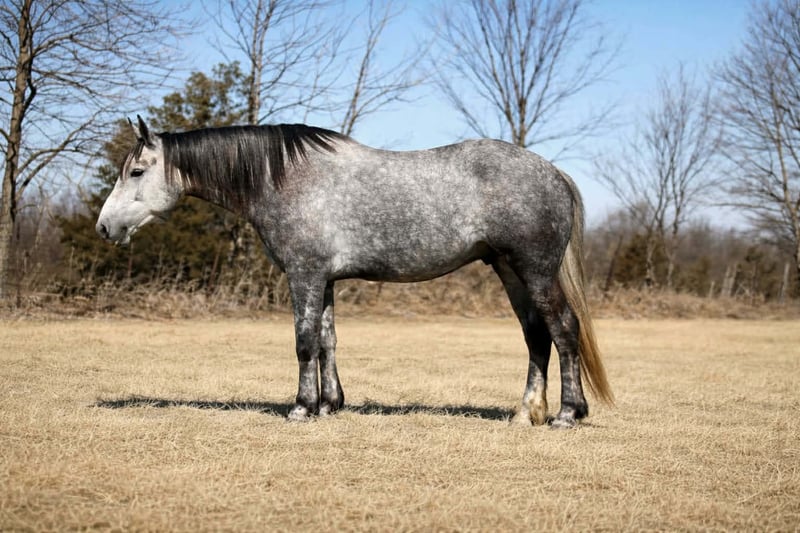 Gunner, gelding di 4 anni, altezza 15.2 hh, grigio, incrocio Percheron/QH