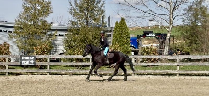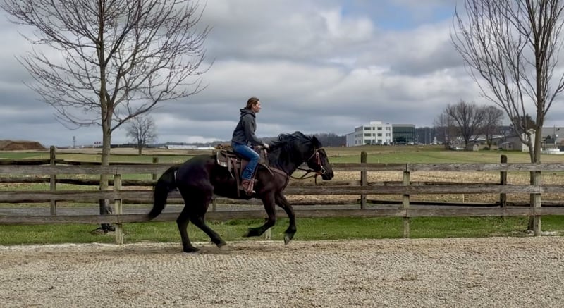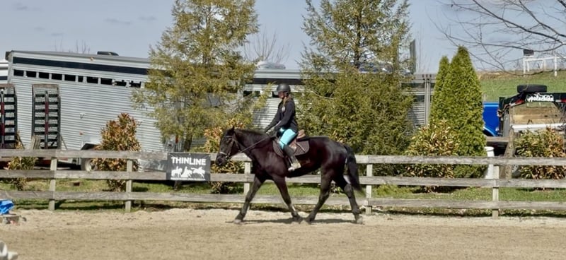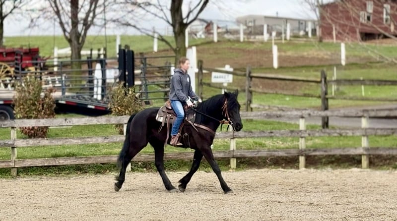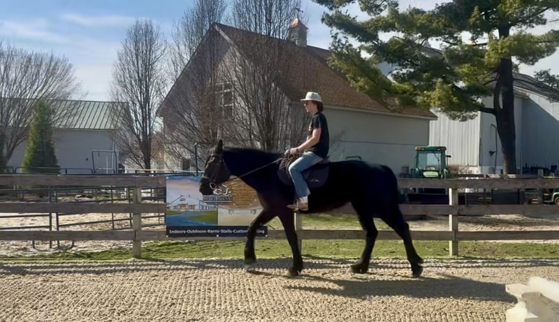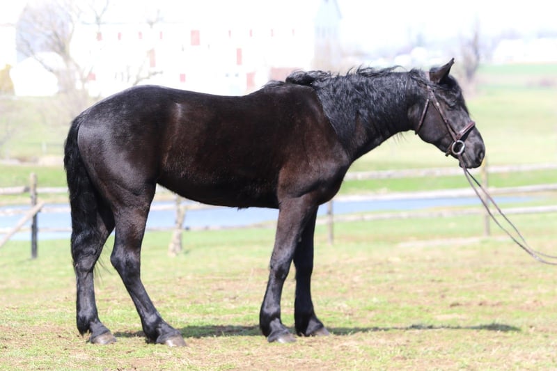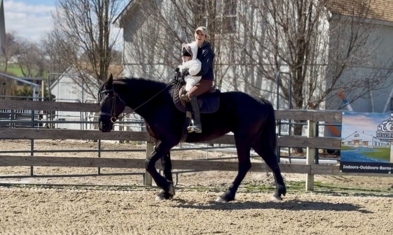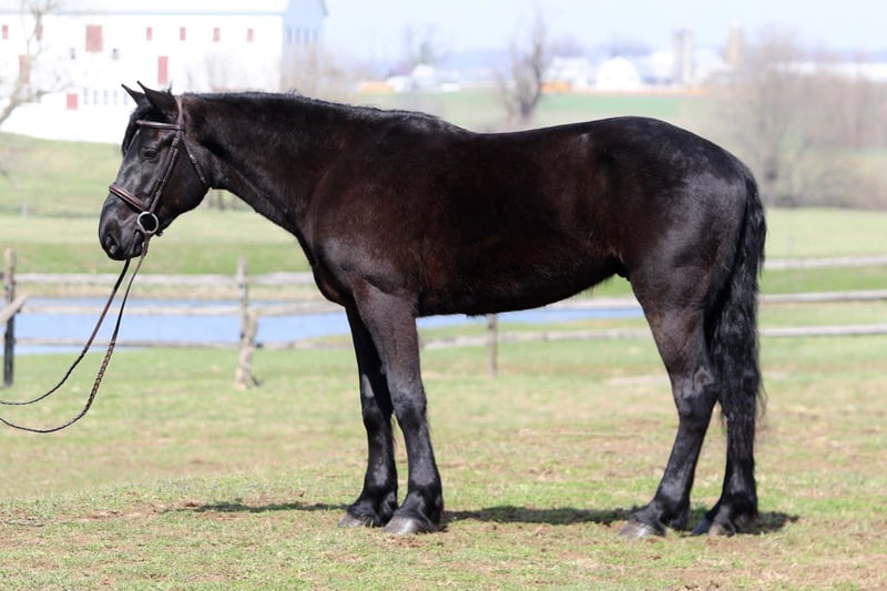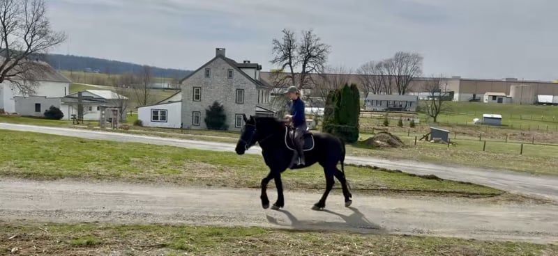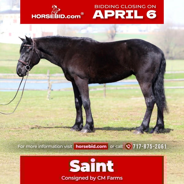 🌟𝑨𝒑𝒓𝒊𝒍 𝐀𝐋𝐋 𝐒𝐓𝐀𝐑 𝐋𝐈𝐍𝐄𝐔𝐏🌟 Happening now thru MONDAY | APRIL 6th - Available EXCLUSIVELY on HorseBid's website! For more details and to register visit: www.Horsebid.com CONSIGNOR CONTACT: CM Farms 717-875-2061 LOCATION: Gap, PA BREED: Perch/Morganx REGISTERED: No COLOR: Black HEIGHT: 15.3 AGE: 4 GENDER: Gelding Meet 💙Saint!💙 This boy truly lives up to his name. He is the definition of safe and quiet, with an old soul. He's a 4-year-old (mentally 24🤣), 15.3-16hh Perch/ Morgan cross gelding. Saint is gentle, sweet, in-your-pocket, slow, and an avid lover of attention. He rides western, English, and bareback, is broke to drive, and even lays down on command! If you've been looking for the ultimate family horse, husband packer, or just a truly safe horse to trust anyone on-here he is!😇 On the trail, Saint is just simple. He tends to bring up the rear with his slow, steady pace and is happy to mosey along in the back. He's never in a hurry, never worked up, and never a problem. He'll pack anyone around and make sure they have a good time! This gelding is special in every way. He's the go-to to pull out for guests and beginners. Saint has a nonchalant, unbothered confidence, and even the most nervous riders can relax and enjoy him. He loves going in the water and is truly a point-and-go ride. He's been in open fields, wooded trails, and even ridden to town—you name it, he's done it! He's traffic safe and has gone through our desensitization program with flying colors. He's reliable and the same ride every time.🤩 In the arena, Saint has a nice walk, trot, and canter in both directions. He will do walk-to-canter transitions, move off your leg, and stop on a dime. He's definitely a push ride and not one that will ever run away with you. In fact, he's a great one to teach riders how to use their leg! He'll go along on a loose, floppy rein and takes a joke better than anyone. If someone gets unbalanced or falls on his neck, his reaction is to stop. We could see him making an excellent therapy horse! He's so safe you can put the kids on him for a pony ride or even ride double for a stroll around. He's the best boy-truly saintly.⭐️ He adores the littles and will follow kids around like a puppy! Saint is gentle-natured, kind-hearted, and impossible not to love. In the barn, Saint is a perfect gentleman. You can throw the kids on his back to groom him while dogs run around his legs, and he won't blink an eye. He loves to be groomed and soak up attention. He'll literally put his head in your arms for a hug! He's a total lovebug with one of the best personalities in the barn. He's curious, wants to be part of the action, and never takes a wrong step. He gets along with everyone and has zero vices. Saint truly acts like an old-school schoolmaster and has quickly become a barn favorite. If you want an incredibly smart, lovable young gelding, don't miss out on him! 💙 UTD on Shots, Coggins, Dentist, Farrier, and Deworming.