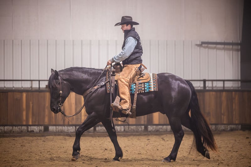 𝑳𝒚𝒏𝒄𝒉 𝐏𝐄𝐑𝐅𝐎𝐑𝐌𝐀𝐍𝐂𝐄 🔹𝑼𝑵𝑰𝑪𝑶𝑹𝑵 𝐂𝐋𝐀𝐒𝐒𝐈𝐂🔹 Happening now thru SATURDAY | MARCH 28th - Available EXCLUSIVELY on HorseBid's website! For more details and to register visit: www.Horsebid.com CONSIGNOR CONTACT: Lynch Performance, LLC 605-212-8917 LOCATION: Canistota, SD BREED: Percheron/Quarter Horse REGISTERED: No COLOR: Black HEIGHT: 15.3 AGE: 4 GENDER: Gelding Home raised, beautiful, and kind-hearted wrapped up in a large 15.3hh coal black package. “Duke” is the most sweet natured horse around. He has the soft, kind eye and the aim to please mind. Duke has a striking jaw dropping presence. People that come to our place cannot help but stop and take a second (and third) look at him. This big boy has a massive tail that reaches the ground, a perfect star on his forehead, and impeccable conformation. Duke is a gelding that is far beyond his years and always has been that way. He has a very mature mind and has wanted to be broke from the very beginning. Duke has been Jared’s personal, main mount to help with the ranch chores. If we need to go catch some cows, Duke gets the call. If we need to sort through stock, Duke gets the call. If we need to halter break some colts, Duke gets the call. This guy is big and strong and knows how to use himself. The chaos that ranch chores can bring is of no concern for him. They do not come better minded. Duke (Dukester, Dukess) sure is handy on the ranch, but he will really catch ones’ attention in the arena. This boy is a beautiful mover! He rides soft in the bridle and stays level headed. He can get his rear end in the ground and can turn around pretty good for a big boy! Man oh man does he ride fancy in english tack! Duke will be soft and responsive in the bridle and his body. We are so trustworthy with this guy that we let our little sixty pound niece ride him. If a steady trail mount is your jam, Duke will be your guy. He will take care of his rider and he is smooth no matter the terrain. Duke will cross creeks mindful of his steps or go right into the big deep water. This gelding has no issue riding out alone or in a group. With him being a bigger guy, we did train him to side-pass to any obstacle to make mounting a breeze. This is a genuine good boy that we are so proud of. We have had him his whole life and have all the confidence that he will be one to put a smile on your face every day.