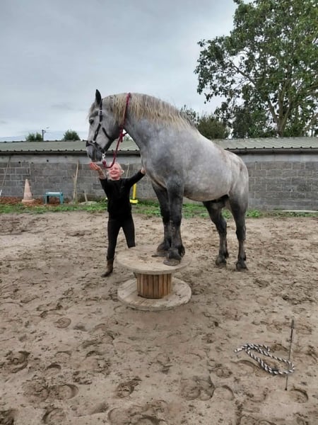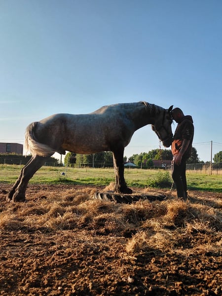 Sattelmak, Pistework, Bodenarbeit, Spaziergänge – er ist erst 4 Jahre alt und muss die Welt noch entdecken. Enormer Teddybär!!!