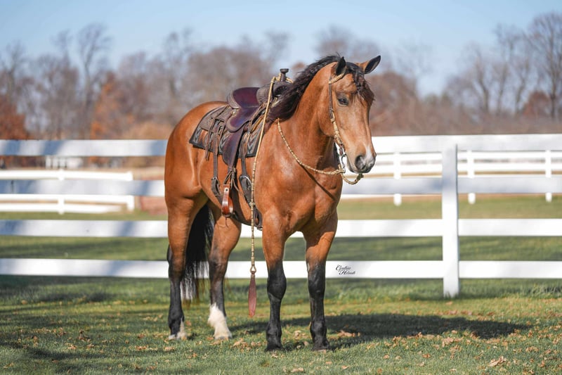 ⚜️ 𝓽𝓱𝓮 𝐇𝐨𝐫𝐬𝐞𝐦𝐚𝐧'𝐬 𝓢𝓱𝓸𝔀𝓬𝓪𝓼𝓮⚜️ Happening now thru MONDAY | DECEMBER 1st - Available EXCLUSIVELY on HorseBid's website! For more details and to register visit: www.Horsebid.com CONSIGNOR CONTACT: R & R Regal Equine 319-334-8649 LOCATION: Independence iowa BREED: Percheron/Quarter Horse Cross REGISTERED: No COLOR: Buckskin HEIGHT: 16 AGE: 5 GENDER: Gelding 🔥 Cinch – 5-Year-Old Buckskin Crossbred Gelding • 16 Hands • Rides & Drives! 🔥 Introducing Cinch, a stunning 5-year-old buckskin crossbred gelding standing a solid 16 hands. This gelding is the total package—good-minded, versatile, and beautifully broke in and out of the arena. Cinch rides English and Western with equal ease. He has three comfortable, balanced gaits and takes both contact and a loose rein willingly. Whether you want a partner for flatwork, ranch riding, or just enjoyable pleasure miles, he’s ready to go. He also drives and does well in traffic, making him an excellent candidate for someone wanting a dependable all-around horse. On the trail, Cinch is confident and sure-footed—happy to lead, follow, or ride in a group. He’s seen a variety of terrain and handles new environments with a steady, sensible attitude. Cinch is the kind that turns heads everywhere he goes and has the demeanor to match. Suitable for riders who want a handsome, capable, and versatile gelding to enjoy for years to come.
