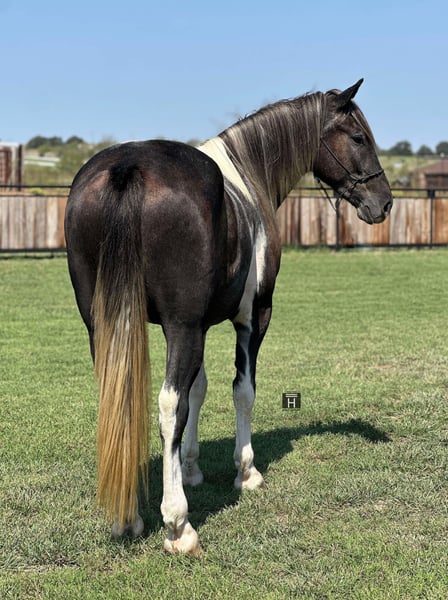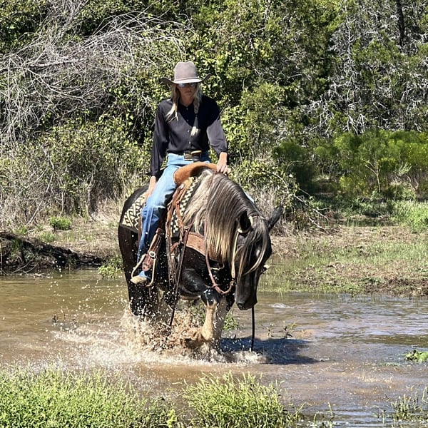 ONLINE AUCTION Place your bids at www.PlatinumEquineAuction.com Starting Bid $3500 Auction ends October 13th, 2024 Need a new saddle? Check out White Rock Saddles on our website or Facebook! Tin Man is a 4 year old Draft Cross Gelding standing 16 hands tall. He is extremely kind and gentle and full of personality. He is broke right and is soft to both hand and leg cues. We have ridden Tin Man out at the ranch, down the freeway, over the obstacles, and in the arena. He is sure footed, goes absolutely anywhere you ask him to, and is a fun and confident ride. We have started Tin Man roping slow cattle and pulling the log. He is gentle and has never offered to buck. He is very good to be around, saddle, bathe, pick feet, etc. We think Tin Man would make someone an awesome trail mount but he also has the athletic ability to be even fancier if someone wanted to go the performance horse world with him in either English or Western discipline. He is forward moving and perky eared and happy to go do something. Tin Man is sound and clean legged. FMI feel free to call/text Holland Horse Co. Chanel 559-978-6320. Located in Jacksboro, TX. We can help arrange shipping nationwide! ONLINE AUCTION Place your bids at www.PlatinumEquineAuction.com Starting Bid $3500 Auction ends October 13th, 2024 Need a new saddle? Check out White Rock Saddles on our website or Facebook!