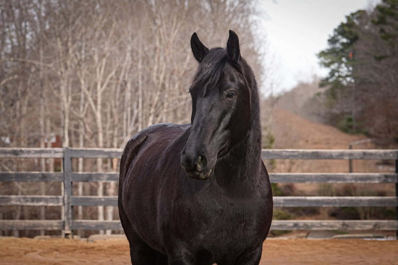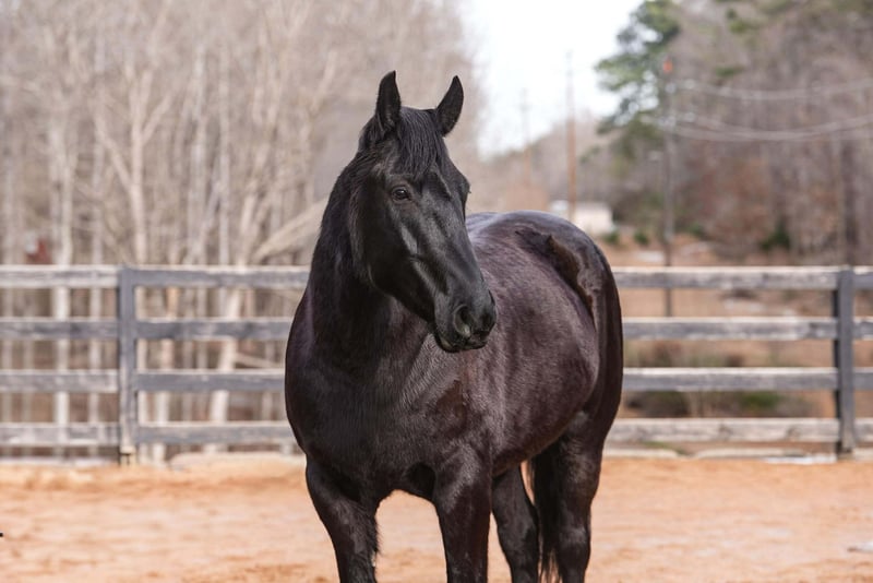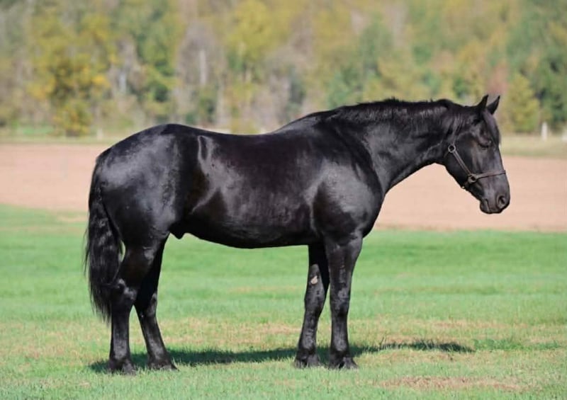 Tobias, 6 anni, stallone nero di 17 mani, incrocio tra Percheron e Quarter Horse