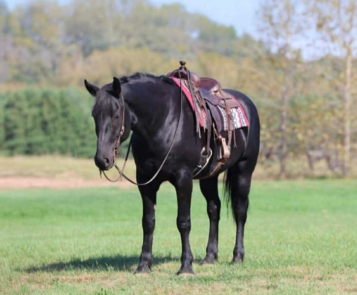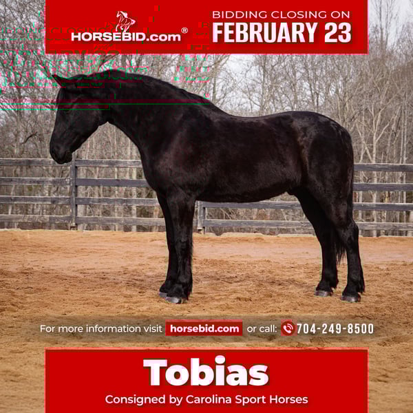 💎 𝐓𝐇𝐄 𝓓𝓲𝓪𝓶𝓸𝓷𝓭 𝐒𝐇𝐎𝐖𝐂𝐀𝐒𝐄 💎 Happening now thru MONDAY | FEBRUARY 23rd - Available EXCLUSIVELY on HorseBid's website! For more details and to register visit: www.Horsebid.com CONSIGNOR CONTACT: Carolina Sport Horses 704-249-8500 LOCATION: Clover, SC BREED: Percheron x Quarter Horse REGISTERED: No REGISTERED NAME: TOBIAS COLOR: Black HEIGHT: 16.3-17 AGE: 6 GENDER: Gelding Meet Tobias… Tobias is the definition of presence, power, and polish. This striking jet-black crossbred gelding stands an impressive 16.3–17 hands and offers the rare combination of size, substance, and true rideability. Tobias brings a proven foundation that you simply cannot manufacture. Having been used for every job on the ranch — from gathering and doctoring cattle to performing under bright lights as a rodeo flag horse — he is seasoned, steady, and completely unfazed by atmosphere. Loud music, busy environments, new venues — he handles it all with confidence and composure. Since joining our program, Tobias has stepped beautifully into English work and truly shines in this discipline. He rides willingly in a correct, balanced frame, is soft in the bridle, and maintains a steady rhythm that makes him uncomplicated and enjoyable. His transitions are smooth, his canter is comfortable and adjustable, and he offers the kind of forgiving nature that makes him suitable for even the most beginner of riders. Under saddle, he remains the same honest, point-and-shoot partner he has always been — whether you choose to ride him Western one-handed, explore dressage fundamentals, pop over fences, or simply enjoy a relaxed hack. He has recently been started over fences and took to it naturally and confidently. In the barn, Tobias is kind, personable, and easy to be around. He has a gentle eye, a big heart, and a personality that makes him a barn favorite. He is straight, clean-legged, sound, and requires no special maintenance. Tobias is the type of horse that turns heads when he walks in — but more importantly, he is the type you look forward to riding every single day. Big enough for a taller rider, quiet enough for a novice, and versatile enough to enjoy in multiple disciplines, he is a rare find in today’s market. If you’ve been searching for a large, jet-black gelding with experience, training, and the temperament to match — Tobias is ready. Clean vetting on file from this week. Contact Us Caleb Wilson 704.249.8500