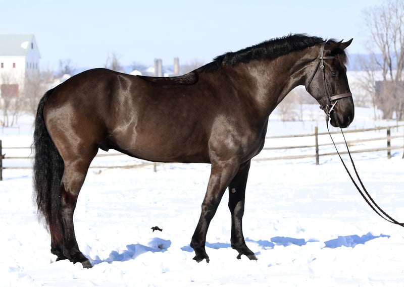 💎 𝐓𝐇𝐄 𝓓𝓲𝓪𝓶𝓸𝓷𝓭 𝐒𝐇𝐎𝐖𝐂𝐀𝐒𝐄 💎 Happening now thru MONDAY | FEBRUARY 23rd - Available EXCLUSIVELY on HorseBid's website! For more details and to register visit: www.Horsebid.com CONSIGNOR CONTACT: CM Farms 717-875-2061 LOCATION: Gap, PA BREED: Perch/Friesian REGISTERED: No REGISTERED NAME: Ricky COLOR: Black HEIGHT: 17.1 AGE: 6 GENDER: Gelding Meet ✨Ricky!✨ This guy is the definition of tall, dark, and handsome! Ricky is a 6-year-old Percheron/Friesian cross gelding standing an impressive 17.1–17.2 hands. He’s built correctly and substantially — you can’t miss this breathtaking boy! He’s like the semi-truck of the horse world, without the dinner-plate feet. He’s broke to ride Western, English, and bareback — and YES, he’s comfy as a couch! Ricky is a true gentle giant with a soft eye and an equally sweet personality. ❤️ In the ring, Ricky will walk, trot, and canter both ways. He’s been brought along slowly, carefully, and correctly, making him simple, straightforward, and easy to ride. This gelding has stunning, ground-covering movement that makes you feel like you’re gliding through the air. He has a soft feel in the hand and is very light on his feet for such a big guy. His trot is extremely comfortable and easy to sit, and he’s learning to collect and extend. His favorite speed is probably slow — he’s definitely a push ride and will never go faster than you ask. His canter continues to improve, with balanced transitions and consistent leads. While he appreciates encouragement to stay forward, he is always willing and eager to please. He stops on a dime off a “whoa” or simply your seat. He’s been lightly started over jumps and is showing nice potential. Overall, Ricky is an extremely quiet and safe ride — one you’ll look forward to pulling out every time. He’d be suitable for an AA, or even a beginner working with a trainer. 🤩 On the trail, Ricky is that steady-eddy type everyone wants. He’d make a fantastic husband or guest packer! He’s happy to lead or follow and doesn’t mind another horse getting into his personal space. You can ride him on the buckle, and he’ll mosey along wherever you point him. He has excellent manners out and the very best brain. He’s been on many trail rides with us, and we’ve even ridden him into town. Traffic and semi trucks don’t faze him at all. Ricky is the go-to guy for a relaxing ride — crack a beer, sit back, and let the worries melt away. He’ll go through water, canter open fields, or bushwhack through thick forest. He’s truly a point-and-go ride you can depend on to get everyone back to the barn safely. He really enjoys going out, and we could easily see him excelling as a trail partner or in fox hunting, paper chases, and hunter paces. ✨ In the barn, Ricky is well-mannered and respectful. He stands quietly on the ties for grooming, tacking, bathing, clipping, or simply being fussed over for hours. He enjoys attention and loves his people. He has a calm, quiet personality and respects your space — though he’ll be happily in-your-pocket once the cookies come out! 😆 He has zero bad stall or turnout habits and gets along well with others. Ricky is currently barefoot with nice, solid feet and is always well behaved for the farrier. He loads easily on the trailer and maintains his same quiet, steady demeanor both on and off property. Ricky lunges, does groundwork, and has completed our desensitization program with flying colors. He’s a true gentleman, and once he realizes you’re his person, you’ll have a best friend for life. We’re excited to see Ricky’s future and want only the very best home for this gentle giant. ❤️ Ricky is sound, healthy, and has zero vices. He is UTD on shots, deworming, Coggins, dental, and farrier care.