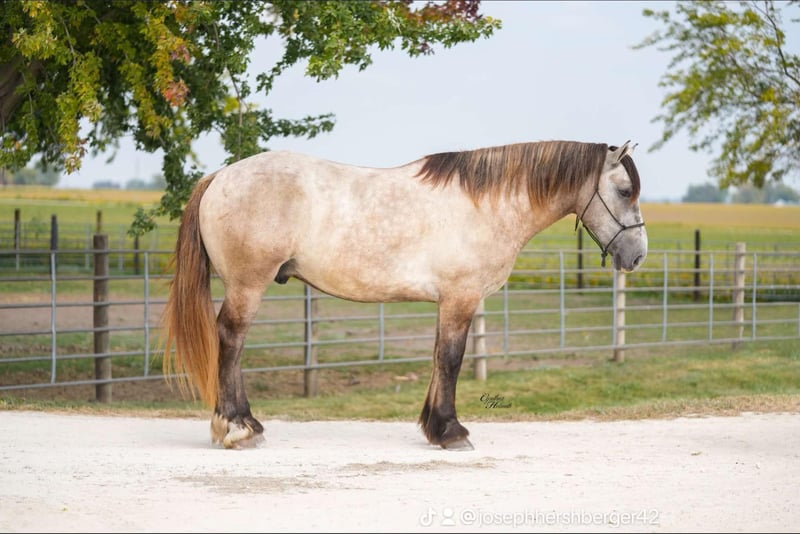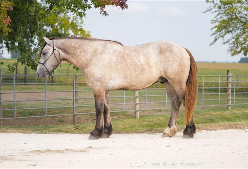 ONLINE-AUKTION Bieten Sie jetzt auf www.PlatinumEquineAuction.com Startgebot: 3.500 USD Die Auktion endet am 26. Oktober 2025 Benötigen Sie ein neues Sattel? Schauen Sie sich White Rock Saddles auf unserer Website oder Facebook-Seite an. Badger ist ein kräftig gebauter, 16,1 hh großer, gerade fünf Jahre alter, grauer Kaltblut-Mix-Geländepferd. Er wurde überall geritten, wohin man ihn mitnehmen konnte… Viele Ausritte im Gelände, auf Trails, durch Flüsse, Gräben und um Hindernisse herum – er macht alles mit! Er meistert alle Hindernisse, ist sicher im Gelände und auch im Straßenverkehr unterwegs. Er reitet gut im Reitplatz, sowohl in der Gruppe als auch allein. Er nimmt die Zügel schön auf, nimmt seine Führungen, läuft schöne Zirkel und macht einen guten Halt. Badger ist in der Größe für jeden Reiterniveau geeignet – vom jungen Anfänger bis zum erwachsenen Reiter, da er kräftig genug ist, um auch einen Erwachsenen zu tragen. Er ist der freundlichste Pferd, das Sie je treffen werden, und liebt Aufmerksamkeit. Er ist gut beim Hufschmied, bleibt ruhig beim Satteln und geht auf Kommando direkt weg, wenn er aufgesessen ist. Er ist viel mit Kindern unterwegs, liebt Aufmerksamkeit und ist leicht zu fangen. Er buckelt, beißt oder tritt absolut nicht, da er vollständig sicher und gut ausgebildet ist. Neben dem Reiten fährt Badger auch sehr gut – im Feld, auf der Straße oder durch die Stadt. Badger ist frei von Makeln, wurde regelmäßig geimpft, entwurmt und ist 100 % gesund und bei klarem Verstand. Wir laden jeden ein, ihn persönlich zu besichtigen und auszuprobieren, um zu erleben, wie großartig er ist! Standort: Independence, Iowa. Kontaktieren Sie Ervin von Platinum Star Stables unter 260-977-9095 bei Fragen.