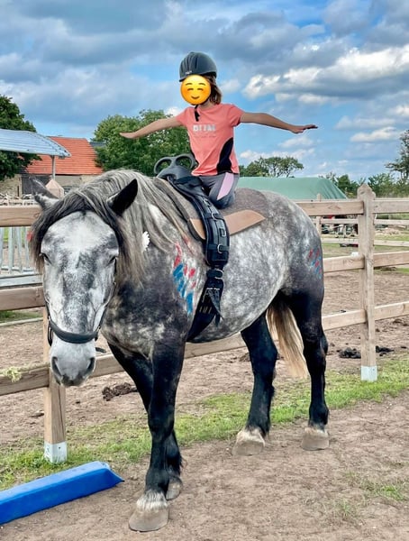 Verkaufe wunderschönen Percheron-Wallach Zum Verkauf steht ein beeindruckender Percheron-Wallach, geboren im Jahr 2019. Dieser elegante Apfelschimmel besticht durch sein kräftiges Stockmaß von 167 cm und seine ruhige, freundliche Art. Er ist ideal für die Freizeitgestaltung und begeistert durch sein angenehmes Wesen sowie seine Vielseitigkeit. Der Pferd ist gesund, regelmäßig gepflegt und kennt den Umgang mit Kindern, Jugendlichen sowie Erwachsenen. Er eignet sich hervorragend für Reiter, die ein zuverlässiges und charakterstarkes Freizeitpferd suchen. Nachdem er schonend Gebisslos eingeritten wurde, war er hauptsächlich ca.3-4 x/ Woche als Therapiepferd im Einsatz. Wechselnde KlientInnen waren nie ein Problem. Er besticht zweifelsfrei durch seine Größe und ruhige und ausgeglichene Art. Ich sehe Ferdinand auch im Bereich des Fahrens. Diese Möglichkeit kann ich ihm jedoch nicht bieten und ich muss aus privaten Gründen meinen Bestand reduzieren. Bei Interesse oder weiteren Fragen stehe ich Ihnen gerne zur Verfügung. Vereinbaren Sie gerne einen Termin für eine Besichtigung und eine Proberunde!