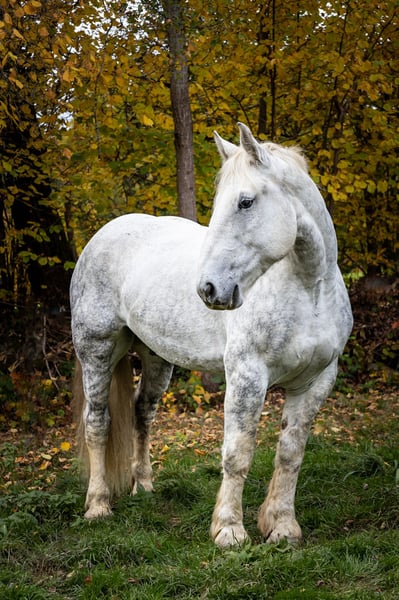 For sale is my 2018-born Percheron gelding. • Height: 177 cm (approximately 16.1 hh) • Weight: 860 kg (recently weighed) • Born on August 1, 2018 • With me for about one year • Previously used for leisure riding and single harness driving (videos available) • Mainly ground work has been done with him here • Well-behaved at the farrier, currently shod front and back • Has PSSM Type 1. He is simply a carrier. Laboratory results available. No abnormalities have been observed during my time with him • Recent blood test (about 3 months old) available • Passport available Not suitable for beginners! He has a few issues that need working on. More details can be provided upon request. Serious inquiries are welcome to send a message with a brief personal introduction.