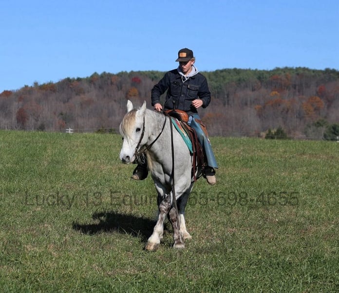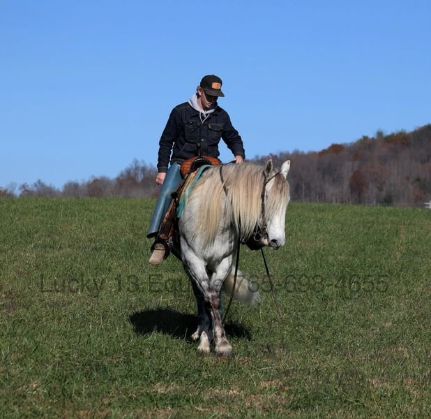 ONLINE AUCTION Place your bids at www.PlatinumEquineAuction.com Starting Bid $3500 Auction ends January 12th, 2024 Need a new saddle? Check out White Rock Saddles on our website or Facebook! Action Jackson is always ready for lifes next adventure! With his contrasting dapple grey coloring, that long flowing mane and tail or his sweet personality… he sparks folk’s attention from all angles! Jackson is a well built 15.2hh, 2018 model, Grey Draftcross Gelding. MAKE SURE TO WATCH HIS VIDEO!!! His name might suggest that he’s just here for adventure and he knows how to go to a job but if a relaxing ride is what you are looking for, then that is exactly what he is wanting to do! Jackson can do anything from slow easy trail rides, pack the medicine bags while pasture roping/doctoring (hundreds of cows/calves as he has), he can push the cows around and hold anything that you tie to the horn. Jackson stands patiently and keeps the rope tight while you work the calf out in the open. If you want to come out of the box, Jackson can turn a steer and has been started on the head side. If you just want to enjoy those long slow miles on the trails with your friends, Jackson is perfectly content to just mosey along slow and easy. He will cross creeks, deadfall, rough rocky areas and scale steep slopes. Jackson is one hand broke, he reins around with ease, has a big stop and lopes very nice circles on the correct lead. Jackson is easy to ride and is safe for all levels whether you use him daily or once a month. Jackson is the type of horse that will keep grandma safe and make her feel like a cowboy all at the same time! Climb on, set back and enjoy all of the action on Jackson! Feel free to call with any questions, to set up a time to come see him or to make a buy it now offer… Lucky 13 Equine Matt 765-698-4655 or Lysandra 765-717-2041. ONLINE AUCTION Place your bids at www.PlatinumEquineAuction.com Starting Bid $3500 Auction ends January 12th, 2024 Need a new saddle? Check out White Rock Saddles on our website or Facebook!