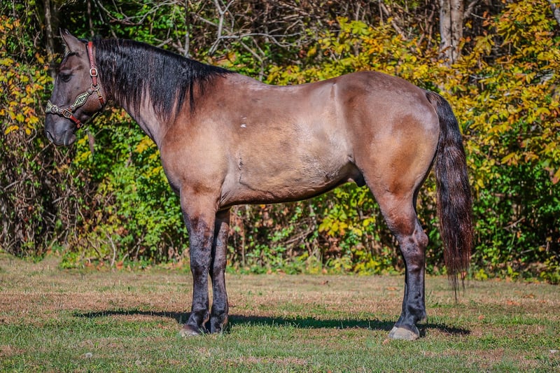 ONLINE AUCTION Place your bids at www.PlatinumEquineAuction.com Starting Bid $3500 Auction ends November 10th, 2024 Need a new saddle? Check out White Rock Saddles on our website or Facebook! This is “LUKE”, a big stout gorgeous PERCHERON QUARTER HORSE CROSSBRED gelding that has been used for ranch work and trail riding. This gelding is handsome, cool, collected, and is the hard to find kind. He stands 16 hands tall and is 7 years old in the prime of his life. He has been ridden in big timber, in the mountains, has been across rivers, and in the deep steep woods. He can carry any size rider all day long. He will ride out alone with no issues. He has been in the arena as well and will lope nice circles and he has a nice soft jog. He will stop nicely on whoa and will back up. He moves off of leg cues and will one hand neck rein. He stands tied, has good ground manners, and gets along well with other horses. He rides low headed and calm. He has been on large rides with many other horses and doesn’t care if he leads the pack or brings up the rear. He is built right, has a good mind, and has lots of outside miles and experience. If you want a big stout GRULLA CROSSBRED with good bone, good feet, and a solid build, check him out. Call HH Horses Erin 304-238-4155 Located in Flemingsburg, KY. ONLINE AUCTION Place your bids at www.PlatinumEquineAuction.com Starting Bid $3500 Auction ends November 10th, 2024 Need a new saddle? Check out White Rock Saddles on our website or Facebook!