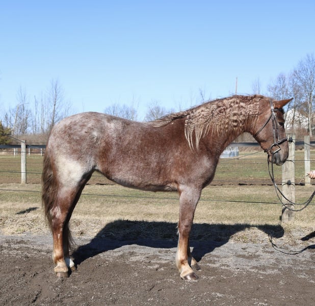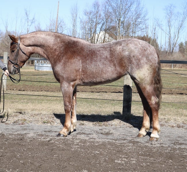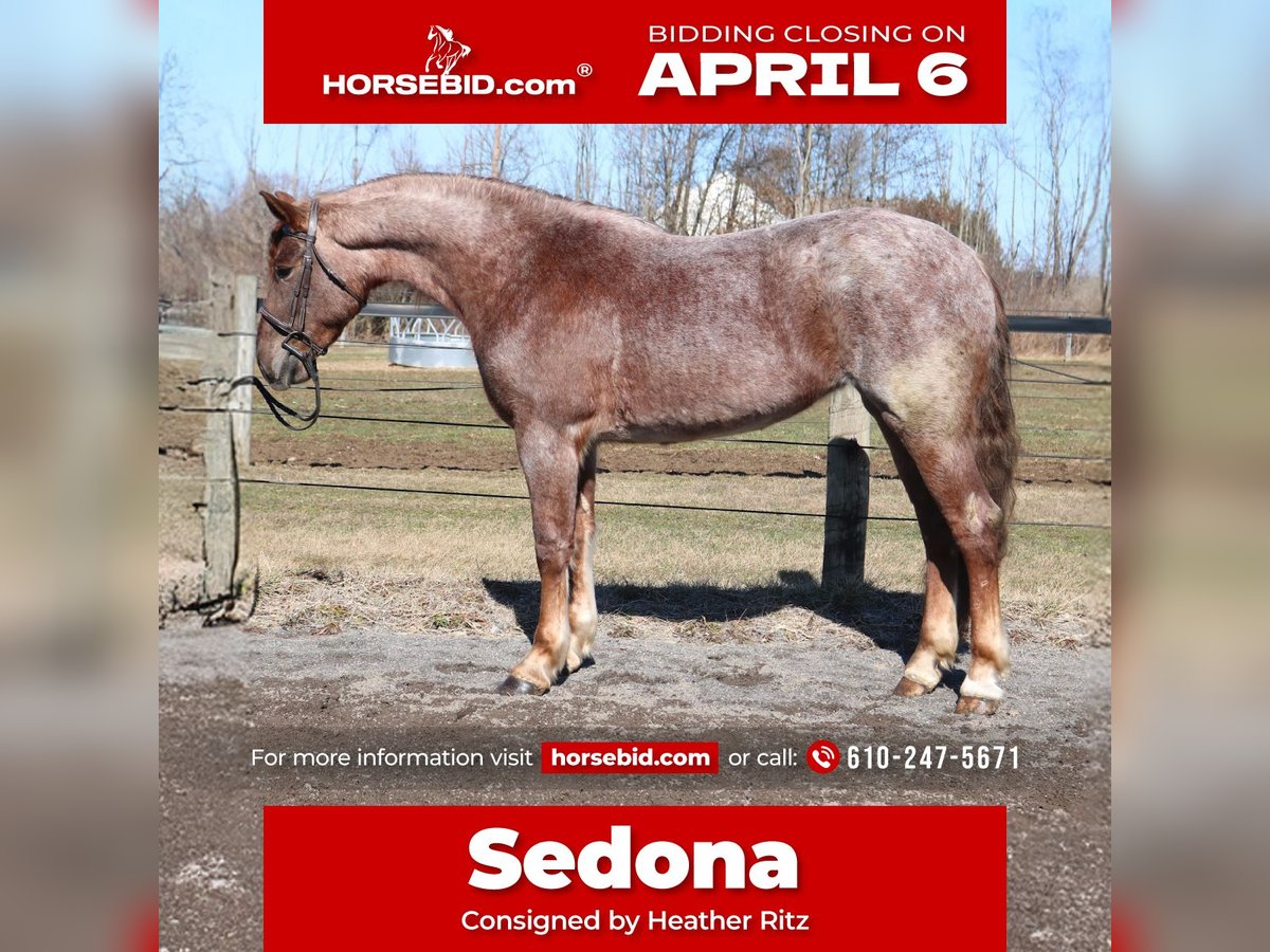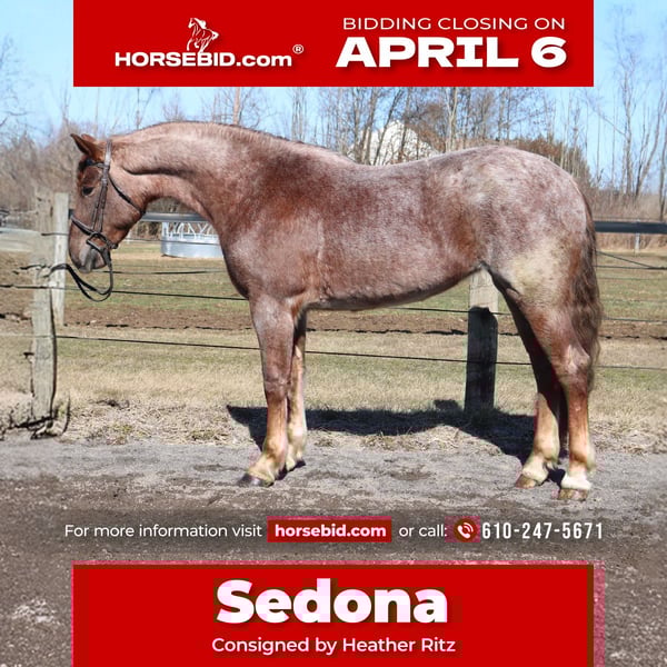 🌟𝑨𝒑𝒓𝒊𝒍 𝐀𝐋𝐋 𝐒𝐓𝐀𝐑 𝐋𝐈𝐍𝐄𝐔𝐏🌟 Happening now thru MONDAY | APRIL 6th - Available EXCLUSIVELY on HorseBid's website! For more details and to register visit: www.Horsebid.com CONSIGNOR CONTACT: Heather Ritz 610-247-5671 LOCATION: Perkasie, PA BREED: Percheron/Friesian X QH REGISTERED: No COLOR: Red Roan HEIGHT: 16.1 AGE: 4 GENDER: Mare ⛰️Sedona⛰️ A standout young mare with the mind, movement, and versatility to take you in any direction. Sedona is a 4-year-old 16hh red roan Percheron/Friesian x Quarter Horse mare. She offers the perfect blend of substance and refinement, paired with an elegant way of going that makes her hard to miss when you walk by. Sedona is up to date on vaccines and Coggins. She is sound, and free of any vices. She is quiet, kind, and easy to handle on the ground. She stands great for vet/farrier, cross ties, and loads easy on the trailer. She absolutely loves attention and isnt afraid to ask you for another treat🍪 Under saddle, Sedona is confidently going both English and Western. She stands to be mounted from a block or on the gound & will side pass to you by the raise of your hand! She has a soft, comfortable walk, trot, and canter, with naturally fluid, eye-catching movement. She has also been started over fences and shows a willing, capable attitude. Sedona’s disposition truly sets her apart. She has been exposed to balls, tarps, flags, and other obstacles, taking everything in stride with a quiet, level-headed mindset. Gentle and trusting, she’s even quiet enough to stand on her back. With her size, athleticism, and trainable nature, Sedona is well suited for a wide range of paths — from pleasure riding to ranch work or further development for the hunter ring, eventing field, or dressage!! ✨ Sedona is a quality young mare with a great mind and endless potential — ready to be someone’s next exceptional all-around partner. ✨