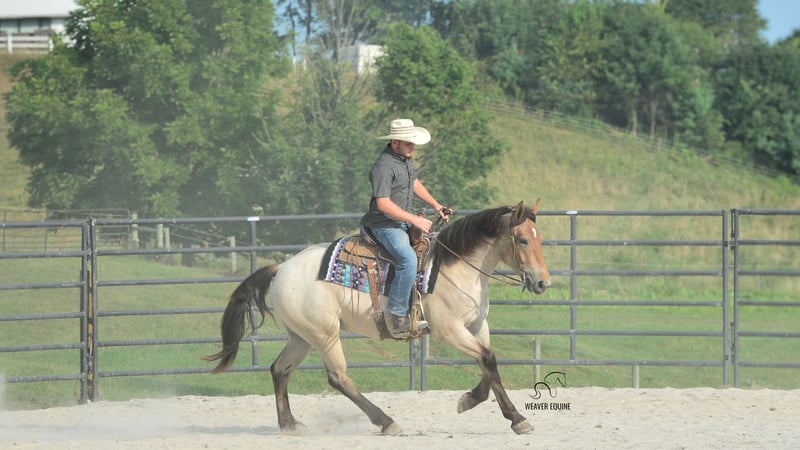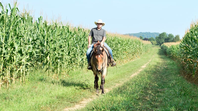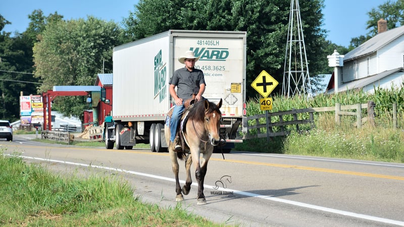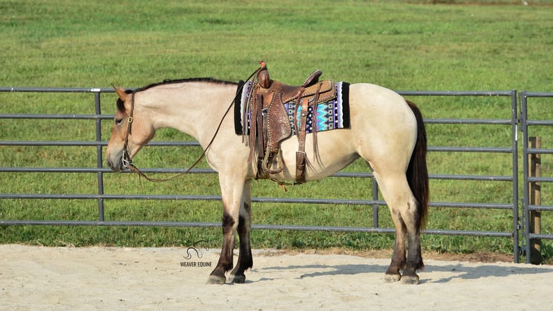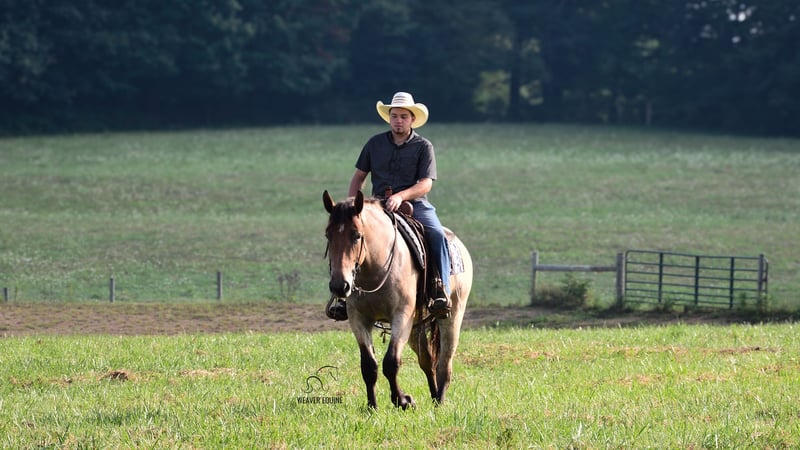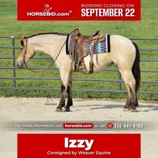 🍁𝒕𝒉𝒆 𝐅𝐀𝐋𝐋 𝑺𝒑𝒆𝒄𝒕𝒂𝒄𝒖𝒍𝒂𝒓🍁 Happening now thru MONDAY | SEPTEMBER 22nd - Available EXCLUSIVELY on HorseBid's website! For more details and to register visit: www.Horsebid.com CONSIGNOR CONTACT: Weaver Equine 330-641-6105 LOCATION: Fredericksburg, OH BREED: Percheron/ Quarter Horse REGISTERED: No COLOR: Bay roan HEIGHT: 15.3 AGE: 4 GENDER: Mare Introducing Izzy! Izzy is a 4-year-old Percheron quarter horse cross Mare that is very well broke to ride. She is 15.3 hands high and a beautiful bay roan color. Izzy is an amazing ride whether it's in the arena, out on trails, in groups, or out in traffic. She will lope a circle nicely. Has a beautiful walk, trot, Canter transition. She will go anywhere you point her. She will stand to mount. And stand nicely at a mounting block as well. She will cross most obstacles easily. She does not mind the tarp, flag ECT. She will pick up both leads correctly. She can and will take a few jumps. Super quiet minded mare. We have had her out on local trails, Where she has always been super great! She will cross creeks and step over logs with ease. She does not mind mud puddles. She rides well out alone or with a group. We have ponied other horses off of her. She takes the hills with ease. She does not mind being out in heavy traffic. We have had her on local trail rides and parades as well. She does not mind a big crowd, and will ride as well in a ruckus as she does at home. Izzy will qualify as Begginer friendly! She is also a doll in the barn. She leads nicely. She will stand nicely tied on her lead line and on the cross ties. She will stand to be groomed and tacked. She stands well for the farrier as well. She will pick up all four feet nicely. She is easy to catch in the stall. She is fine when turned out with a group of horses, and will be the first one to greet you in the pasture. No maintenance. 100% sound. Izzy has that super sweet loving attitude that we all love to have in our barn! She loves attention, treats and we'll do anything to please you. I really can't say a bad word about her! Definitely a family horse. One fits all! Don't miss this pretty girl! Available now!