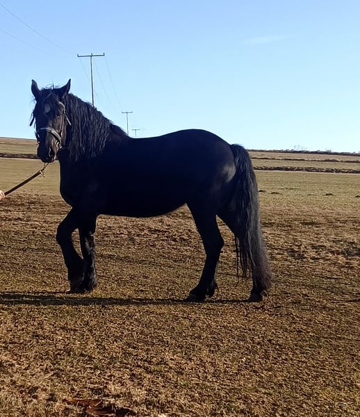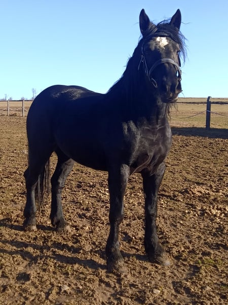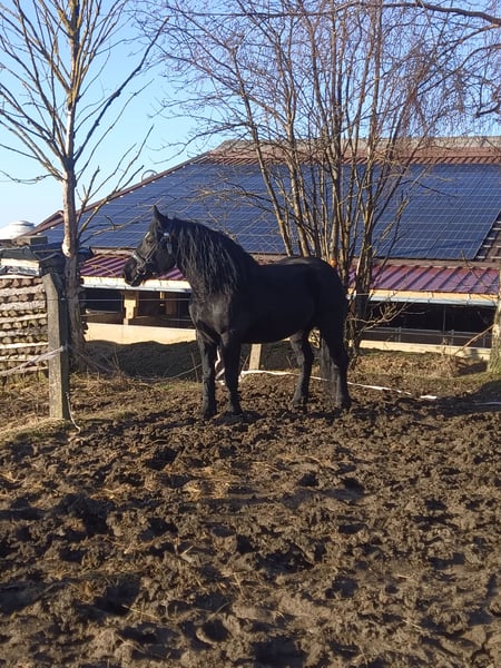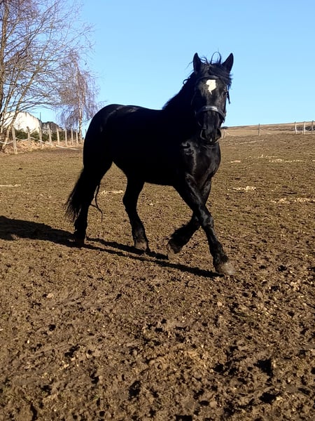 biete hier eine bildhübsche Kohlschwarze Percheron Stute an namens Kattl 5 Jahre alt Stockmaß 172 cm Sehr sehr brav im Umgang Leicht zu händeln Schmiede und Verladefromm Denkbar als ideales Reit -oder Kutschpferd Volle Papiere von einem großen Bekannten Percheron Züchter Perfekten Körperbau, keine Mängel Vier schwarze Hufe Eine kleine weiße Blesse Keinerlei Hautprobleme oder ähnliches Für nähere Infos, Preis oder Besichtigungen bitte melden 0151 12414553