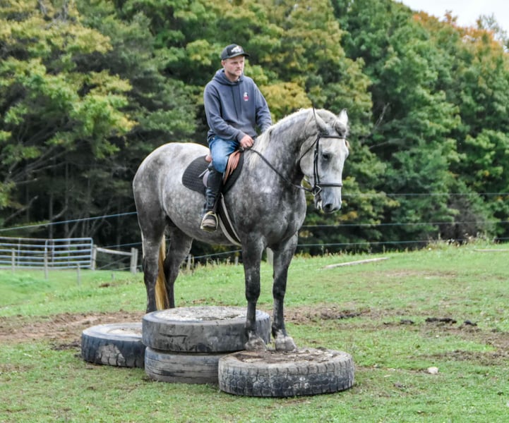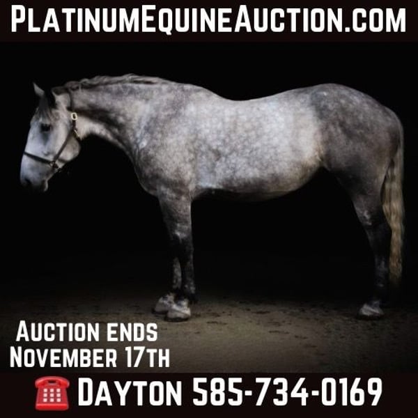 ONLINE AUCTION Place your bids at www.PlatinumEquineAuction.com Starting Bid $3500 Auction ends November 17th, 2024 Need a new saddle? Check out White Rock Saddles on our website or Facebook! “ Tesco” is a 4-year-old 16.3 hand draft cross mare. Her beautifully marked grey coat and sweet demeanor endear her to everyone she encounters. She is a great size to fit many different riders. She is well broke, knows how to use her body, and is gentle in every way. Tesco stands to be mounted, is not phased by tarps, the bullwhip, or any other obstacle we ask her to face. She has been ridden English, Western & bareback. Tesco is quiet and enjoyable to ride; complete beginners have ridden her to advanced riders on the trails and in the arena. She spent all summer at a camp teaching young, timid kids how to ride, and we have also used her multiple times for our special needs lessons. She loves also the trails! Water, rocky terrain, steep hills, and bridges, nothing will bother this horse. Tesco will confidently ride down a busy road, unfazed by the surrounding traffic. She has an extremely smooth walk/trot/canter, knows her leads, and has an excellent whoa. Tesco is always eager to work and please her owner. She has a puppy dog personality and gets along with mares and geldings in the pasture. She stands for the vet, farrier, or just to be loved on and groomed. This girl is absolutely stunning. She has been hauled off the property many times and is the same on the property as she is off. She sells 100% sound with no vices. PPE is welcome at buyers expense. Contact Wolcotts Versatility Horses Dayton 585-734-0169! Visit our facebook page Wolcotts Versatility Horses and Training for more information on our training! Located in Warsaw, NY. ONLINE AUCTION Place your bids at www.PlatinumEquineAuction.com Starting Bid $3500 Auction ends November 17th, 2024 Need a new saddle? Check out White Rock Saddles on our website or Facebook!