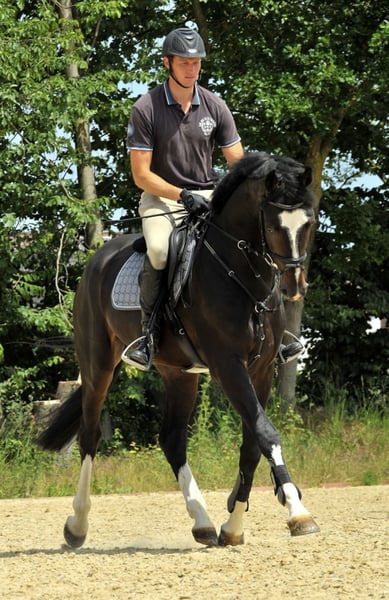 This great stallion impresses with his special look and character. Licensed in Verden in 2018. In 2019, he successfully completed his 14-day test with a 9.0 for his character, an 8.5 for his interior, an 8.0 for his willingness to perform and an 8.0 for his jumping ability. At the beginning of 2020, he won a novice class show jumping test for young horses at his very first competition. In February 2021, Perfect One presented himself well at the show jumping competition in Münster-Handorf. With an overall score of 8.20, we were pleased with our stallion. His other scores were also very satisfactory. Canter: 7.80 - ability: 8.70 - manner: 8.00 - rideability: 8.40 Final jumping score: 8.24 He is now competing in medium and advanced (M & S) level classes and has been diligently collecting placings and impressing with his willingness to perform.