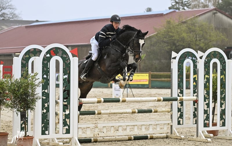 Questo grande stallone colpisce per il suo aspetto e il suo carattere speciale. Autorizzato a Verden nel 2018. Nel 2019 ha completato con successo il suo test di 14 giorni con un 9.0 per il suo carattere, un 8.5 per il suo interno, un 8.0 per la sua disponibilità a esibirsi e un 8.0 per la sua capacità di salto. All'inizio del 2020 ha vinto una prova di salto ostacoli per giovani cavalli nella classe novizi al suo primo concorso. Nel febbraio 2021, Perfect One si è presentato bene al concorso di salto ostacoli di Münster-Handorf. Con un punteggio complessivo di 8,20, siamo stati soddisfatti del nostro stallone. Anche gli altri punteggi sono stati molto soddisfacenti. Canter: 7,80 - abilità: 8,70 - modo di fare: 8,00 - cavalcabilità: 8,40 - punteggio finale focalizzato sul salto: 8,40. Punteggio finale con enfasi sul salto: 8.24 Ora sta gareggiando in classi di livello medio e avanzato (M & S) e sta raccogliendo diligentemente piazzamenti e impressionando per la sua volontà di esibirsi.