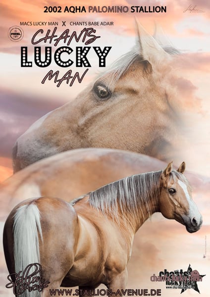 Chants Lucky Man to piękny ogier z ogromną osobowością. Zawsze przyciąga wszystkie spojrzenia i zachwyca swoim charyzmatycznym wyglądem. Przez kilka lat z sukcesami startował w reiningu, a dziś przekonuje swoją wszechstronnością. Niezależnie od tego, czy to trail, horsemanship, lekcje cyrkowe, jazda bez siodła czy skoki – Lucky jest bardzo chętny do jazdy, niezwykle wygodny w siodle i wyróżnia się świetnym zachowaniem pod jeźdźcem. Chants Lucky Man jest wnukiem legendarnego Hollywood Mana. W jego rodowodzie znajduje się również Snapper Cal Bar. Jego matka, Chants Babe Adair, również odnosiła sukcesy w różnych dyscyplinach. Ma dobrze umięśnioną budowę ciała, jest zwrotny i zawsze czujny. Lucky po raz pierwszy został pokazany wiosną 2006 roku i zaskoczył wszystkich swoją spokojnością. Zdobył wiele miejsc na podium i zwycięstw w 2006 roku, a na koniec zdobył również „GermanOpen”. Mimo wszystkich sukcesów w pokazach, jest także idealnym partnerem do rekreacji, który najchętniej spędza godziny na przytulaniu i z radością wyrusza na spokojne i odważne wędrówki w terenie.