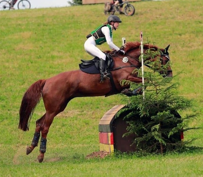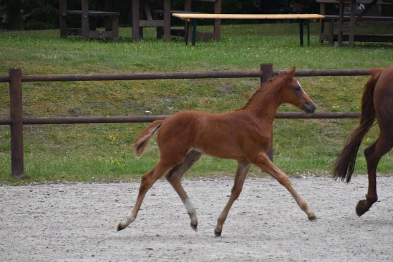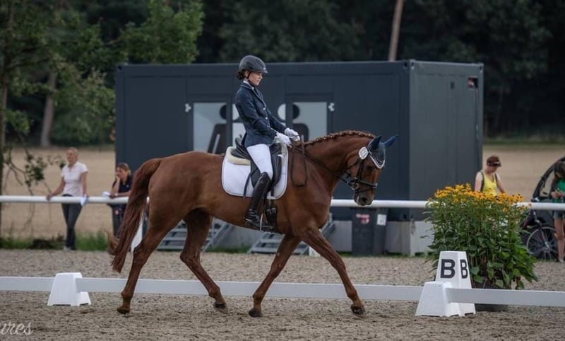 Our 12-year-old Mecklenburg mare Daysy S by D'Olympic x Solar is for sale. At the age of 5 she took part in the Bundeschampionat for eventing horses with good results. She was then successfully shown by amateur and young riders up to elementary class (dressage + show jumping), as well as CNC2* + CC|* Intro. Daysy and her rider were members of the Mecklenburg-Vorpommen state squad. In this context, she took part in the Golden Sash and the National Young Rider Championships. Daysy always wants to go to the other side in cross-country/jumping and has never had a stall in cross-country. She is also suitable for weaker/anxious riders. Due to an injury, Daysy had a 1.5 year break from competitions, during which she gave birth to a prize-winning colt (2023) by Cabalu, which can be seen in the last pictures. The injury has healed completely. Daysy is currently placed in VA, A-jumping and has won A-dressage. (With amateur) FEI passport available. Videos on request Please inquire via WhatsApp: +49 173 8587683