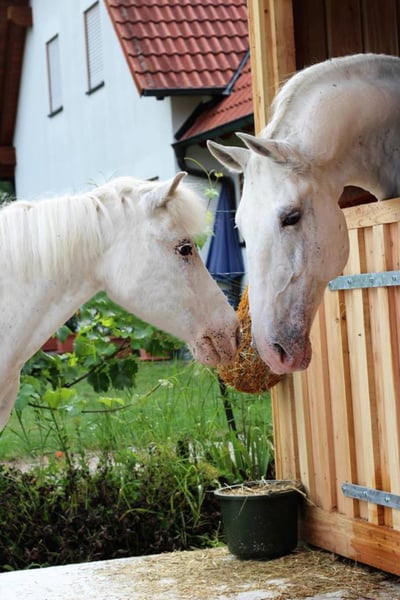 Ausbildung des jungen Pferdes – der Weg vom Züchter zum Verlasspferd: Petra Kronwitter hält beste Kontakte zu den Züchtern und ist mehrmals im Jahr in Vorort, wo sie direkt auf den Weiden die Pferde begutachtet. Diese direkte Zusammenarbeit mit den Züchtern bringt alle positiven Voraussetzungen mit, die ein zukünftiger Pferdebesitzer beim Kauf finden möchte: Drei Eckpfeiler, die ein gutes Pferd ausmachen: 1. Die Züchter kennen über viele Pferdegenerationen die Blutlinien ihrer Pferde und damit verbunden die Eigenschaften, die vererbt werden. 2. Alle Pferde wachsen in einer herrlichen, gesunden Landschaft in einer Herde mit den verschiedenen Altersgruppen auf und erhalten dadurch eine natürliche Sozialisierung. Sie bekommen viel Muskulatur und gute Lungen, wenn sie lernen, sich auf den hügeligen Weiden trittsicher zu bewegen. Wenn sie dann 3-jährig sind, fehlt den jungen Pferden allerdings eine fundierte, korrekte Ausbildung zu verlässlichen Reitpferden. 3. Die übernimmt Petra Kronwitter dann, wenn sie sich vom freundlichen und positiven Charakter der Pferde überzeugt hat. Sie wählt einige aus und holt sie zu sich in ihren Stall in Mainbernheim, wo sie in den nächsten Monaten ausgebildet werden. Petra hat meist schon Anfragen von Kunden und sucht sich die Pferde aus, von denen sie überzeugt ist, dass sie zu den Familien oder Turnierreitern gut passen könnten. So gibt es die sportlichen, die sensibel und leistungsbereit unter dem Reiter sind, genügend Potential in den die Grundgangarten haben, sich geschickt beim Springen anstellen oder mutig im Gelände über Gräben und feste Sprünge gehen. Trotz dieser wunderbaren Rittigkeit sind sie immer klar im Kopf. Diese sensiblen Pferde verlangen nach einem feinfühligen, aber mutigen Reiter, um im Leistungssport oder auf der Jagd ihr Können zu zeigen. Oder es gibt die gutmütigen, gelassenen und braven Pferde, die nach korrekter Ausbildung als Familien- und Freizeitpferd den zukünftigen Besitzern viel Freude machen und den eher vorsichtigen Reitern viel Vertrauen geben. Wenn die Pferde dann entsprechend ausgebildet sind, werden sie oft von Junioren der Reitschule auf Turnieren vorgestellt oder gehen bei Reitjagden mit, so dass die Interessenten wissen, dass das Pferd im Sport erprobt ist, sich verladen lässt und durch seinen guten Charakter ruhig, aber leistungsbereit alles mitmacht.