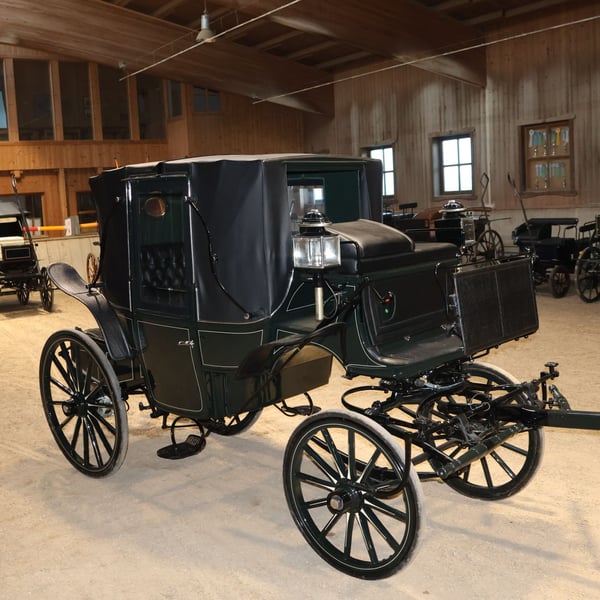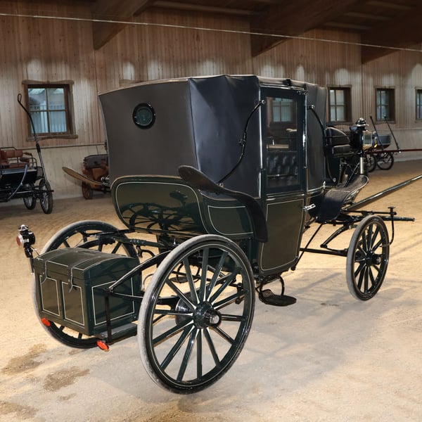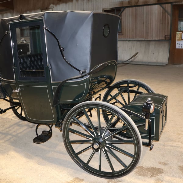 Wagon for Vis-à-Vis carriage, newly restored, 4-horse team, leather trunk Brand: / Type of carriage: Vis-à-Vis Type of horses: Large horses Team size: Up to 4 horses Condition: Like new Restoration: The carriage was fully restored a few years ago at a cost of approximately €10,000 and has not been driven since Drivability: Yes, the carriage is fully operational and handles without any issues Color: Dark green with white accents Included in delivery: See pictures If you require further information such as dimensions or additional photos, please feel free to contact us! The trunk also contains a cover tarp for the carriage as well as other accessories, which are included in the delivery. NOTE: The carriage is being sold on behalf of a private riding school closure. We will provide an invoice, but under §25a VAT margin scheme. Please understand that, due to the sale being on behalf of a third party, there may be delays of 1-2 days if you have any questions, as these need to be forwarded to the owner first. There is also a collection of pole or similar parts, some of which may fit the carriage. You are welcome to view on-site whether you want to keep any of these parts. Details can be discussed during a viewing. Pickup preferred! Delivery within a certain radius can be arranged for an additional fee—please contact us to clarify the details. 1-month return possible. 12-month warranty! Including invoice with VAT margin scheme under §25a UStG. If you have any further questions or suggestions, please feel free to contact us. More interesting items can be found on our shop page.