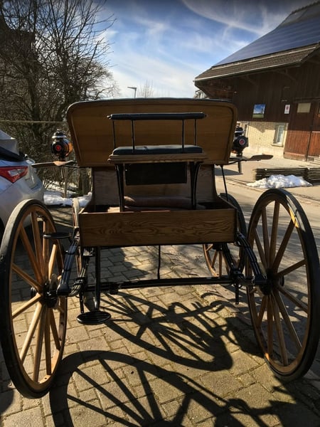 Top Zustand, sehr gepflegt! - ein-und zweispännig fahrbar - bis 4 Sitzplätze - Polster der Sitzschale aus Leder - 2 Kühnle Kutschenlampen - 2-er Sitz zum Einstecken mit Lederpolster - Original Abdeckplane als Staubschutz aus KU Interessanter Preis auf Anfrage